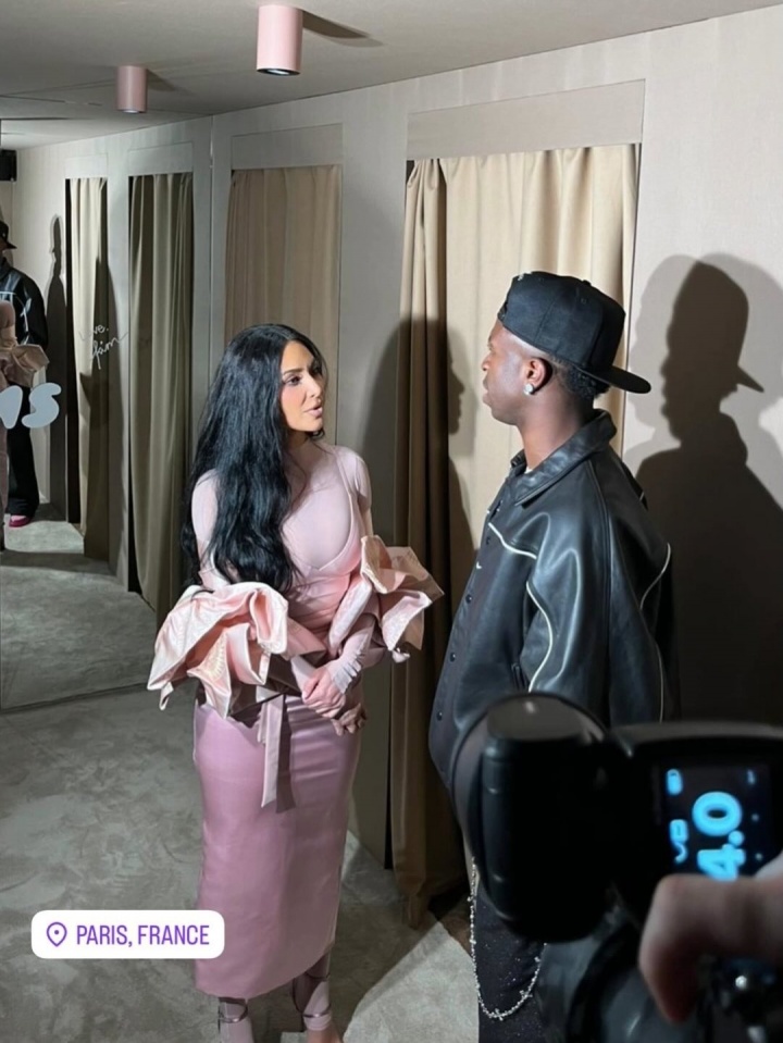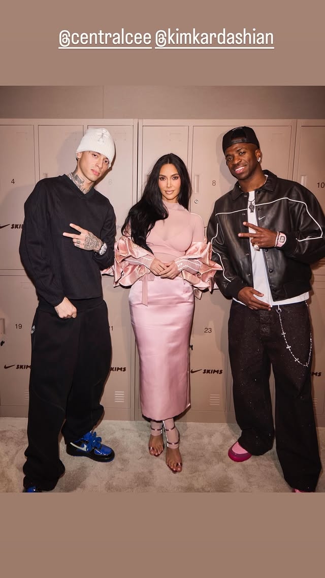 维尼修斯抵达巴黎参加耐克活动,与金·卡戴珊合影交谈