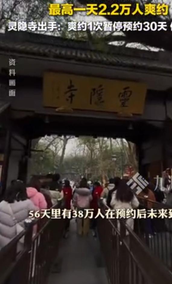 灵隐寺对爽约者出手了 2月3日,灵隐寺发出官方公告对预约免费门票而爽约的参观者实行30天内不得再次预约的限制规定。 众所周知杭州灵隐寺是1座5a级景区,自去年12月起开始实施免门票服务,让广大游客节省了资金成本而备受欢迎。 然而游客在预约门票后却并不珍惜机会很多人做出无故爽约的举动,最多的一天爽约者高达2.2万。 56天内灵隐寺被放鸽子56万人次。这在一定程度上影响了景区内的管理。 因此,经多方考量景,区作出如上决定。 在这个问题上,作者支持景区的做法也许有人会说一个景区既然免门票就该直接放行来者不拒。 也许还会有人认为不必要提前一天预约,只要到景区门口直接扫码预约即可。 啊但是如果设身处地从景区管理角度出发就不会有以上的想法了。 大家支持哪种看法呢?
