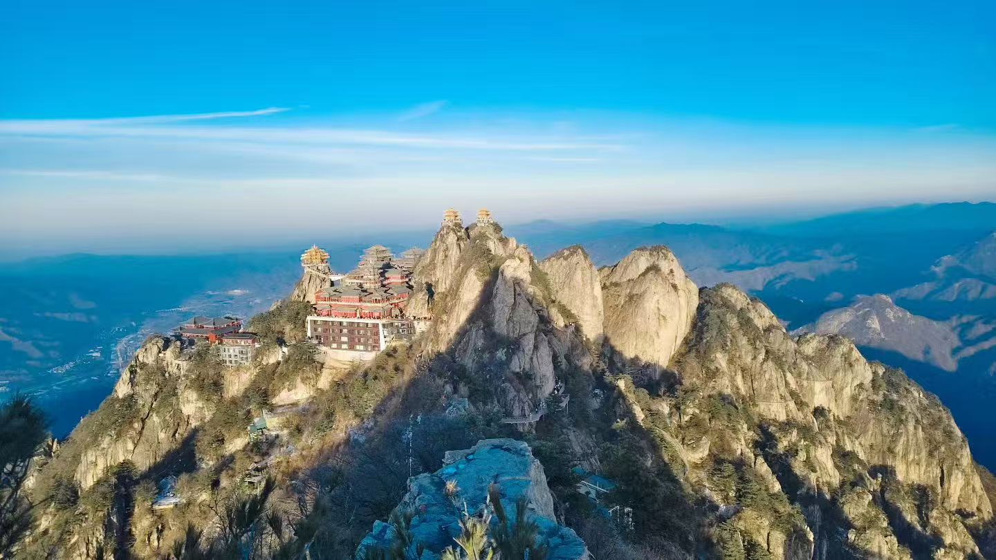 ✅金顶道观群:这里是老君山的核心地标,冰雪覆盖的金殿与蓝天交织,随便一拍都很出片。可以拍摄钟鼓楼、老君庙、玉皇顶等建筑。