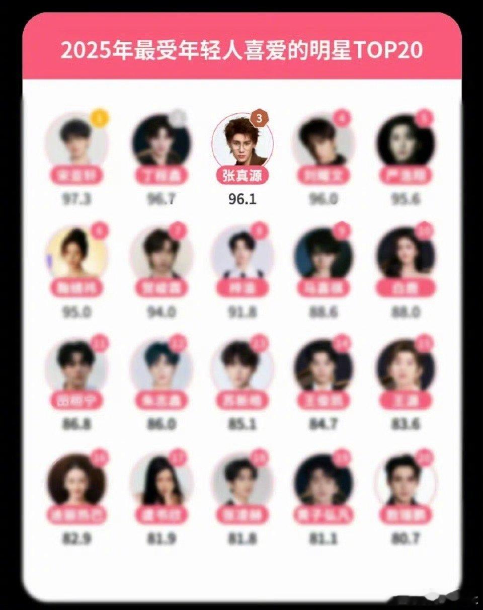 张真源最受年轻人喜爱明星TOP3🥳这个张真源好优秀,还得是你啊!
