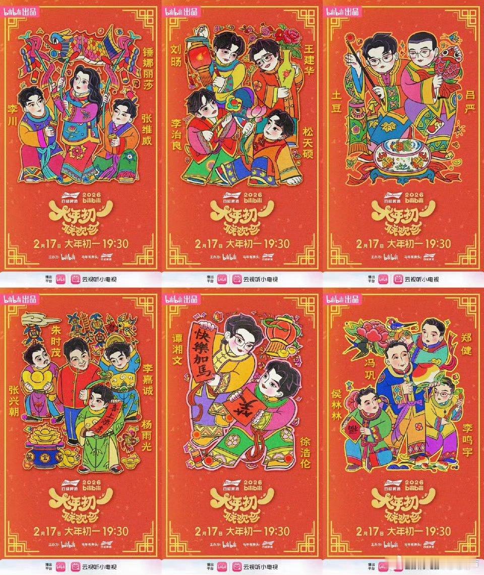 传统文化审美还得看B站晚会传统文化到位 创新应有尽有 很喜欢这个特色,大年初一联欢会的艺人年画海报太绝了