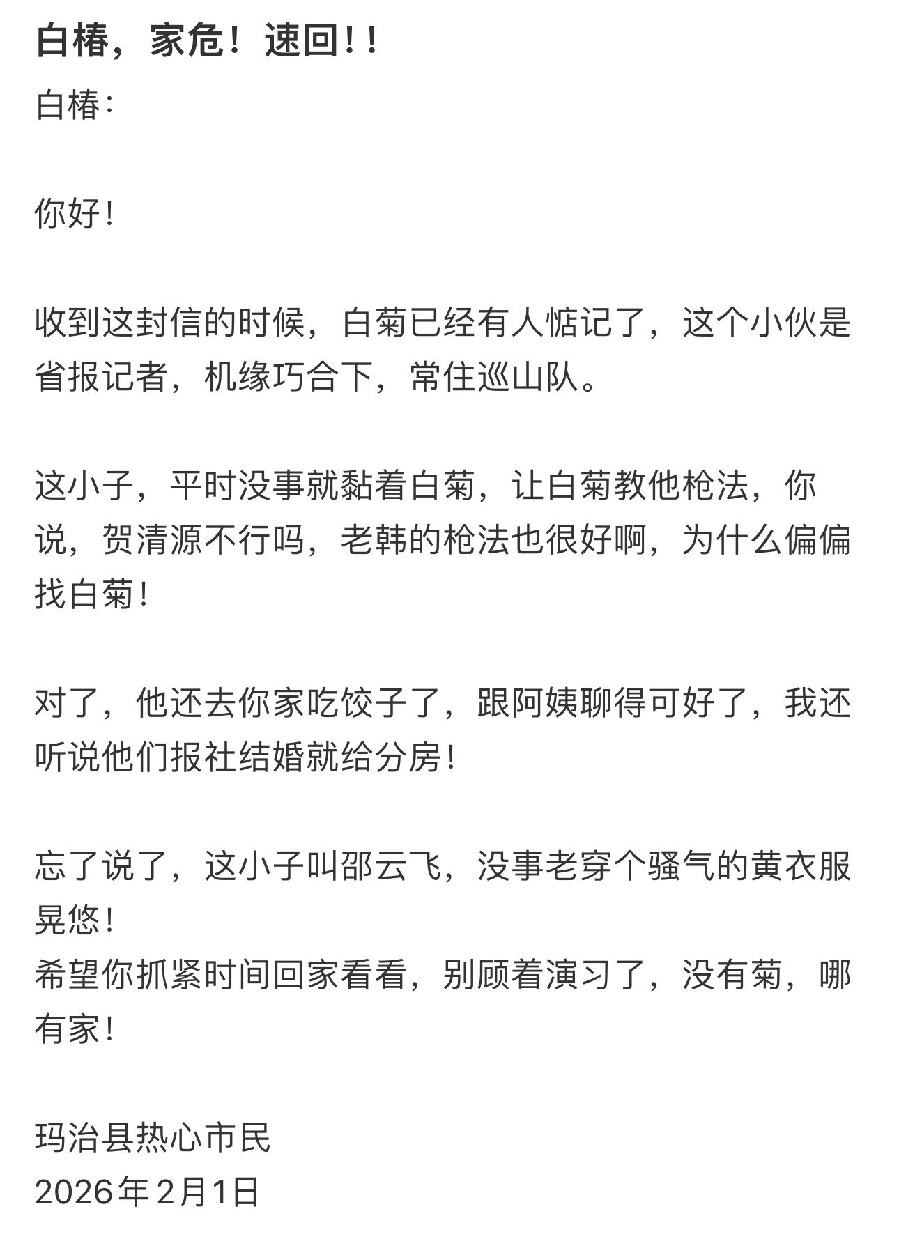 白椿啊,听我的,你先把票退了……(玛治县热心市民书)
