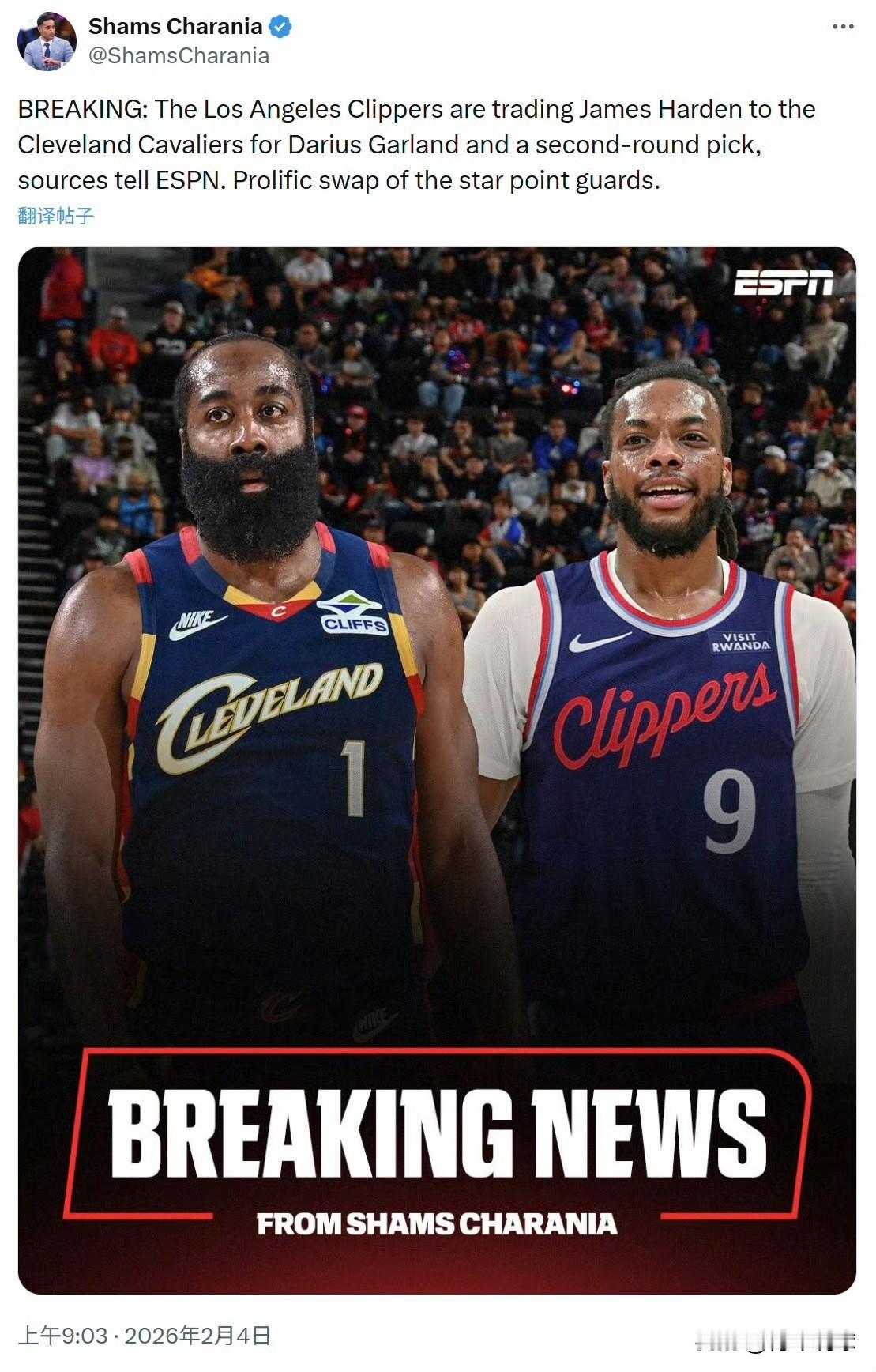 交易成功!哈登如愿以偿! 有关哈登的交易终于尘埃落定!据权威记者Shams报道