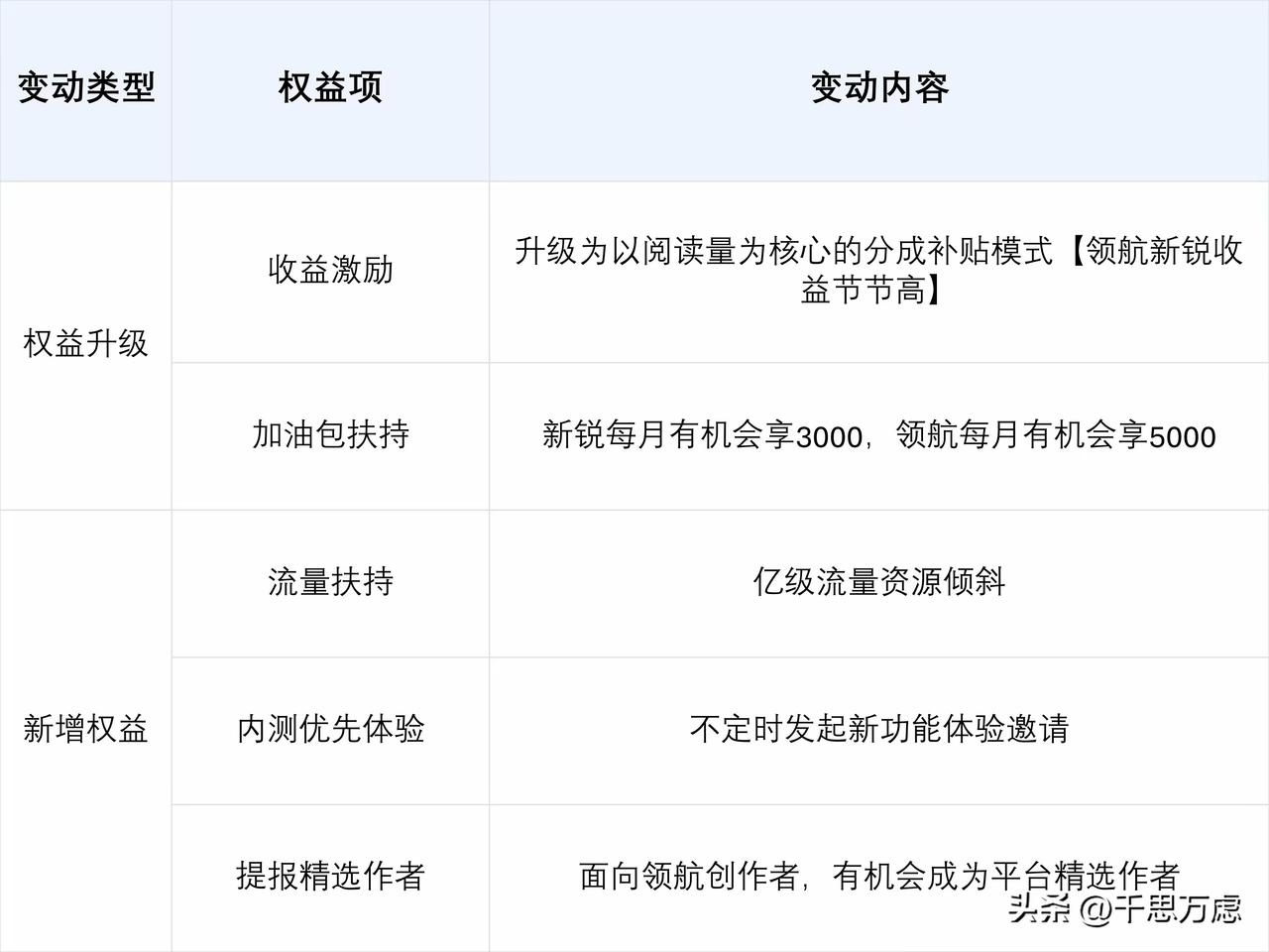 今日头条一直很用心,一直在围绕创作者的利益不断地改进和完善激励机制。 精神激励让人荣誉感满满。每一次勋章奖励就是一个加油站。见过许多媒体平台,今日头条在精神激励这方面,做得很细致、很到位,不同层级不同成就对应不同称号,每当创作者取得一点点成绩时,平台都会及时鼓励,令人感动。我是一位今日头条新人,在平台鼓励下,入驻一年多来,勋章数量由0个逐渐增长到了23个。 稿酬激励让人实惠多多。为今日头条创作,有不少人是奔着挣钱来的,自己的成果能被平台认可分享给更多人,能挣到高额石酬劳一定是好事,名利双收。但是创作是艰苦的,自己利用业余时间写了一些东西,以微头条为主,文由心生,全是有感而发,尽管阅读量一直不是很理想,但一直在坚持,我也在向一些网络大V学习,希望能得到平台更多认可。我不在乎稿费多少,一分钱也是心血的结晶啊,关键是今日头条给了我们一个优质平台,相信坚持就会有收获。 常态化联系让人温暖如春。今天立春了,可今日头条一年四季都给创作者们春天的感觉。一年之内在好几个时刻,你总会收到平台发来的问卷调查,每次我都会认真填写并提出意见。这一点平台做得很好,没有调查就没有发言权,头条为我,我为头条,从创作者中来,到创作者中去。这份朴素的真诚的情愫把作者和平台紧密联系在一起。 平台这次对新锐领航权益升级,对广大创作者来说无疑是一个喜讯,尤其是对想要在今日头条深耕一番事业的创作者来说更是一次莫大的鼓励。