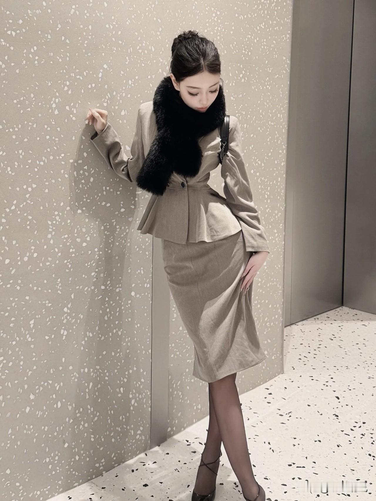 最近好爱这种自带腰线的套装,真是懒人福音——不用费心搭配,套上就显比例。尤其喜欢浅咖色系,温温柔柔的,不扎眼但特有质感。 系腰带那个瞬间最妙。随手一收,曲线就出来了,再围条黑色毛绒围巾,暖呼呼地堆在领口。✨ 整个人那种“从容”的劲儿就来了,不用硬拗,贵气是顺着身形自然淌出来的。 晒图笔记大赛 套装 腰线