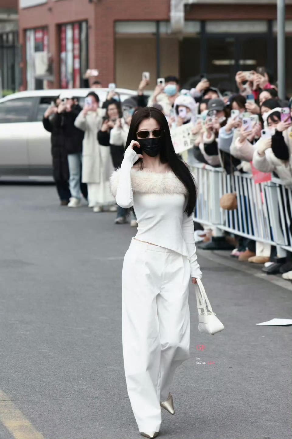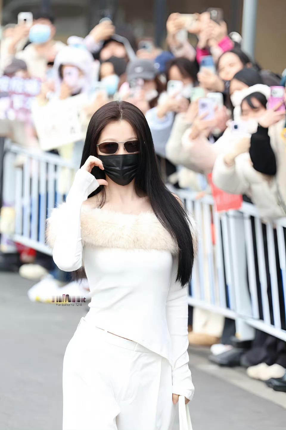 书欣摸摸锁骨🥵🤤虞书欣黑长直白色毛领一字肩造型