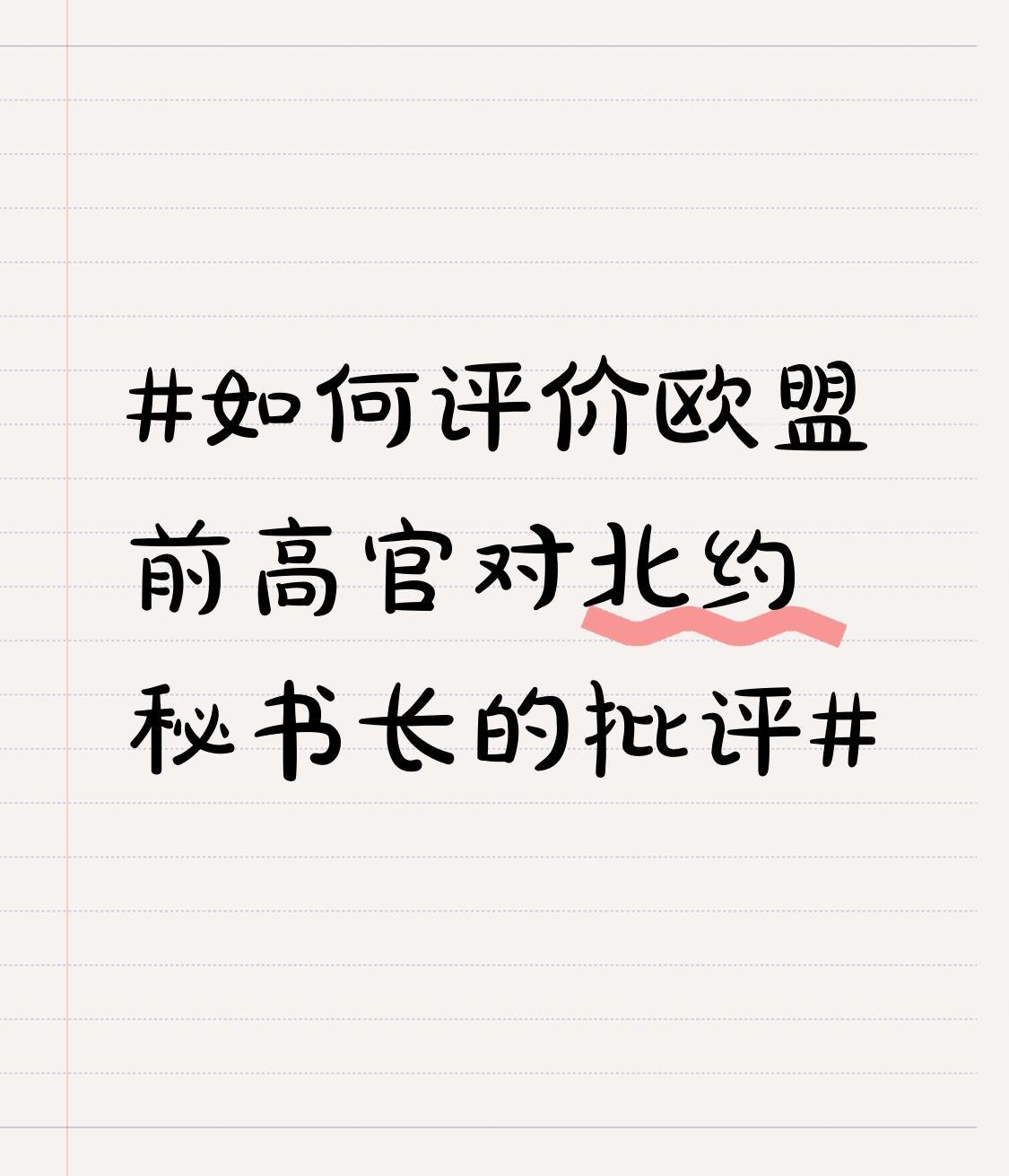 欧盟前高官批评北约秘书长,这事儿挺值得琢磨。北约作为军事联盟,在国际事务中一直扮演着重要角色,北约秘书长的决策影响广泛。 欧盟前高官的批评,可能是看到了北约在一些事务上的不当之处。比如北约不断东扩,加剧了地区紧张局势,给欧洲安全带来了不稳定因素。北约秘书长若在推动东扩等决策上一意孤行,那自然会招来批评。 这也反映出欧盟内部对北约的不同看法。欧盟追求的是欧洲的和平与稳定,而北约某些行动可能与这一目标背道而驰。欧盟前高官的发声,或许是想让北约调整方向,别再“任性”下去。