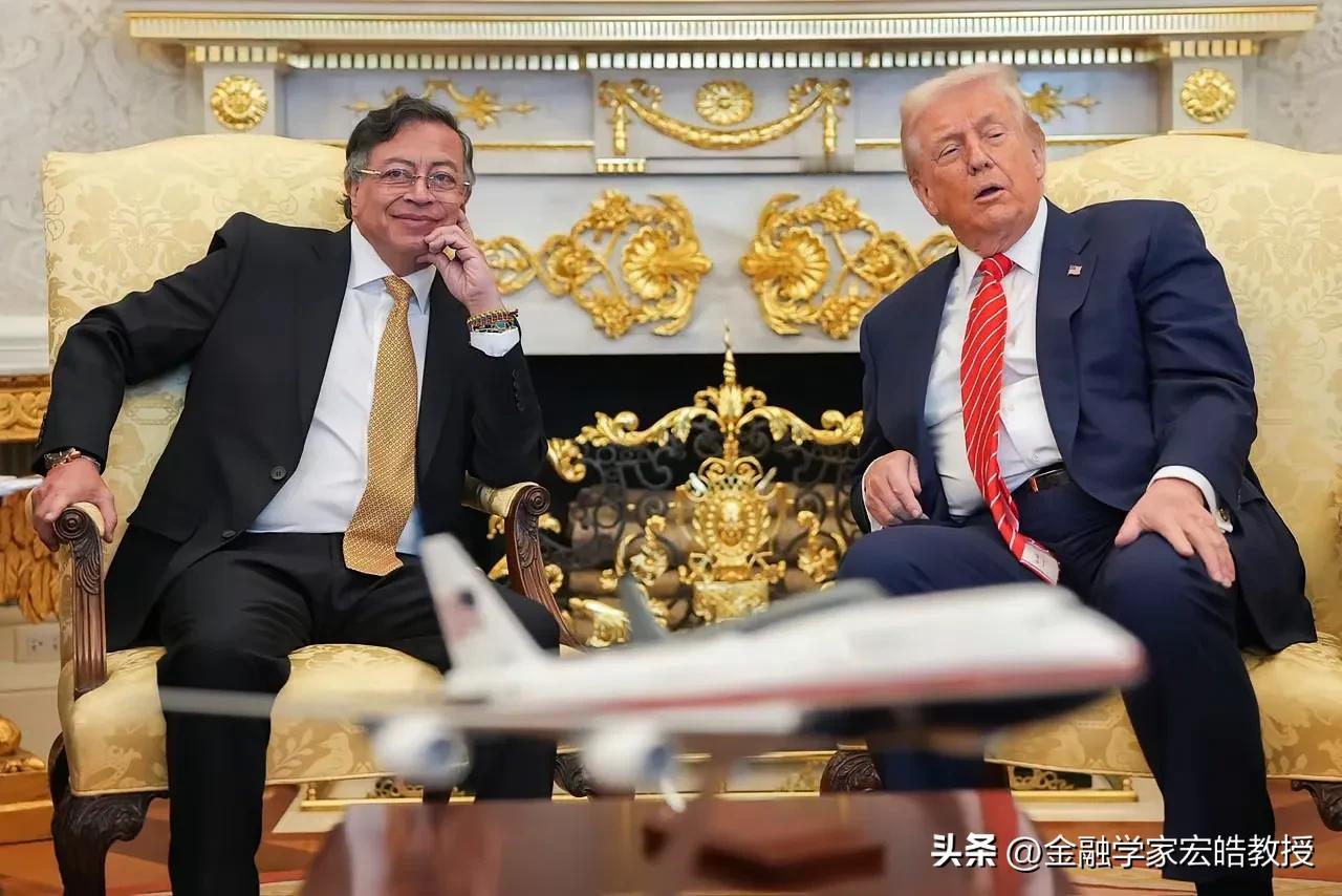 大反转!反美先锋佩特罗为何急会特朗普?背后藏着拉美国家的无奈! 反美喊得最凶的哥伦比亚总统佩特罗,为何转眼就踏进白宫与特朗普会面?竟然还在白宫办公室跟特朗普一起吃炸鸡,喝可乐?显得非常从容!这波光速转身,藏着比表面对抗更现实的博弈。 佩特罗从怒斥特朗普、反制关税到主动会谈,从不是认怂,而是看清了哥伦比亚的现实:禁毒依赖美国情报技术,经济受美贸易掣肘,特朗普的军事威胁更是悬顶利剑。所谓反美,是为争取平等对话权;急于会面,是为守住国家核心利益,避免像委内瑞拉陷入政局动荡,也不想自己跟马杜罗一样的下场。 这份看似矛盾的选择,实则是小国的生存智慧:不做美国附庸,却也不愿硬刚引火烧身。在霸权面前,佩特罗的每一步,都是带着反美底色的务实妥协。 说到底,拉美国家的外交从来没有绝对的立场,只有永恒的利益,这便是佩特罗最真实的心态!