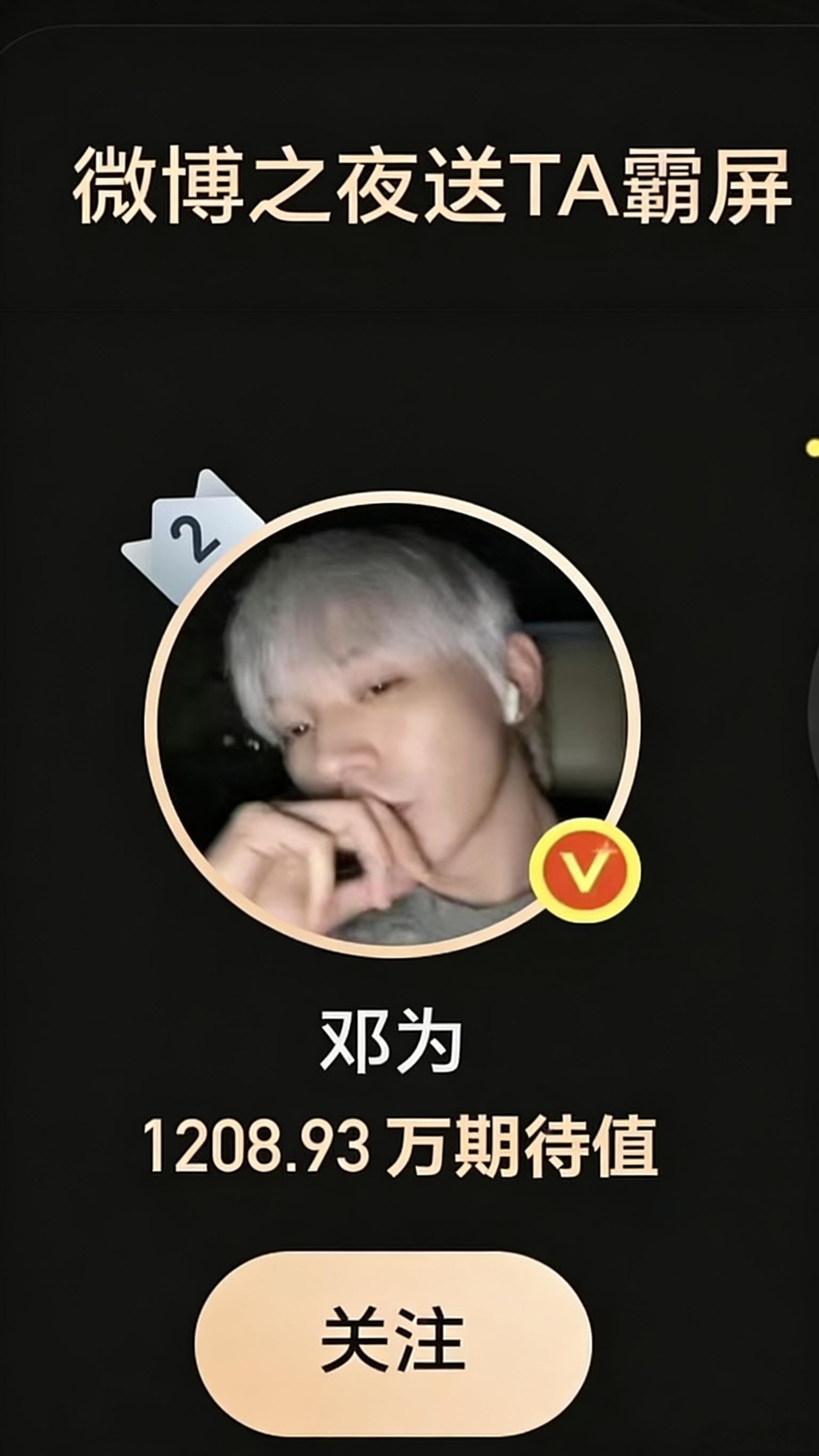 邓为微博之夜霸屏榜TOP2邓为好棒!一直低调谦卑、温柔善良的青年演员邓为,演技扎实又有灵气,每一个角色都可圈可点,有作品有实力更有路人缘,颜值与演技双在线!坐等邓为微博之夜惊艳亮相,闪耀全场