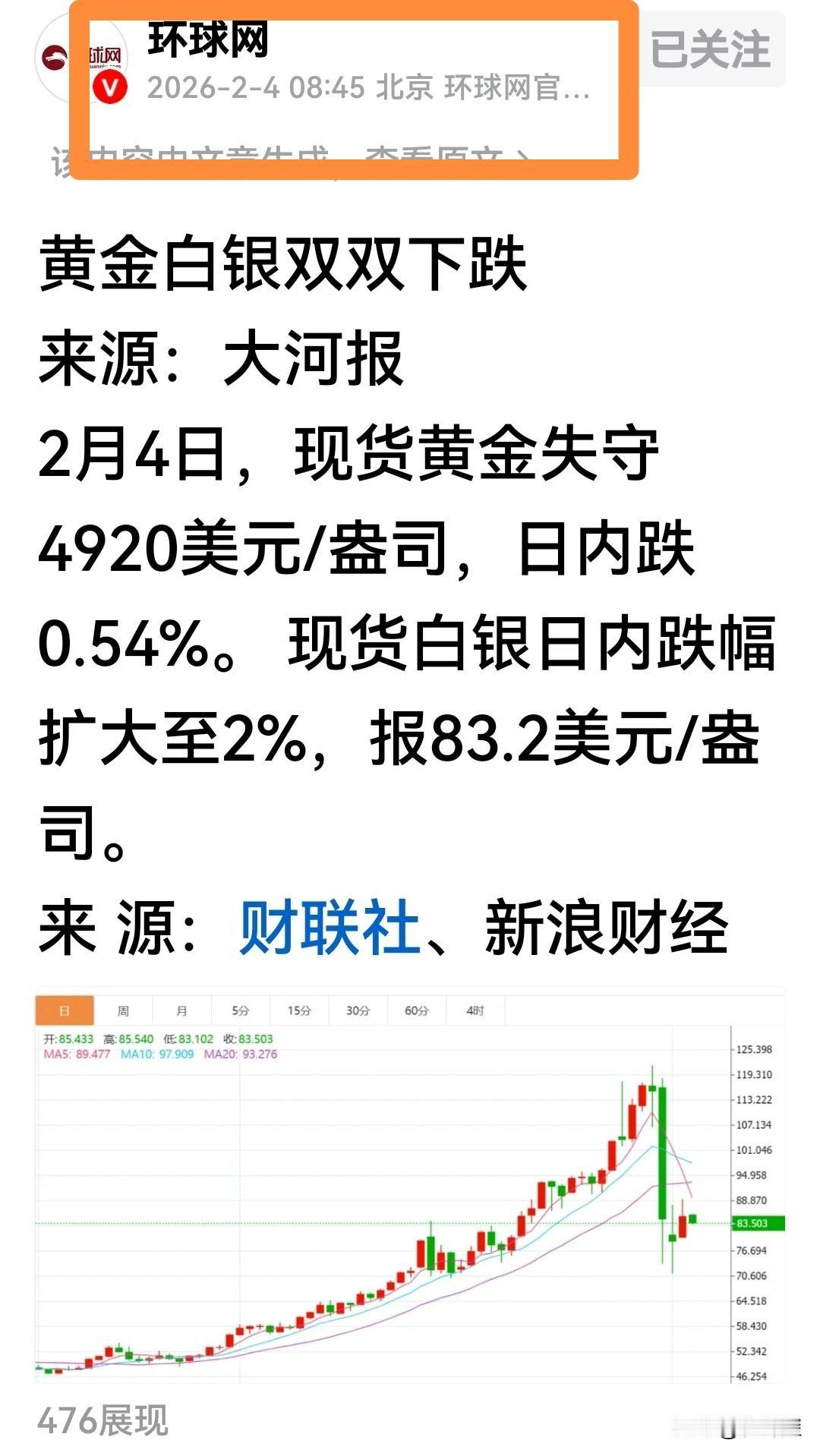 都疯了? 今天早上8点45分钟,黄金价格跌破一盎司4920元,短短六分钟,黄金就站上了每盎司5000美元大关! 短短六分钟一盎司涨了80美元?并且是在六分钟前还是跌破4920美元,从下跌到转涨80美元,只在短短的六分钟,这真是应了那句话?一袋烟的功夫?波动如此剧烈,谁受得了?这是真疯了,疯的不轻?近期金银价格暴跌的原因是什么 李大霄:贵金属震荡余波可能会继续 如何预测和分析金银未来的价格走势 黄金价格还会重回高位吗