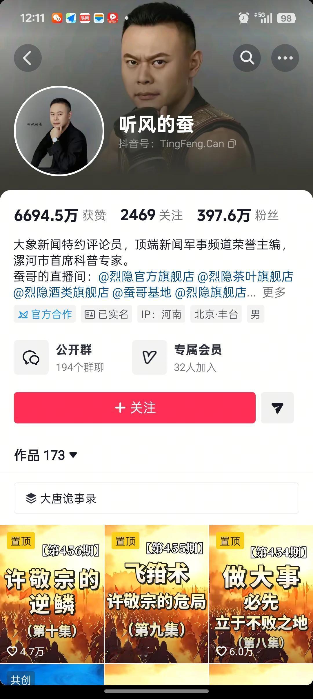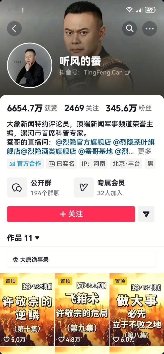 曾顶着爱国标签的军事博主“听风的蚕”,究竟怎么了?他曾是千万级的大博主,如今粉丝数量却一路狂跌。从最初的千万级别掉到470万,之后更是呈断崖式下跌,截至今日,仅剩下340万左右了! 意识形态的斗争,从来是看不见硝烟的,如此大规模脱粉,是平台所为,还是自己所为,亦或是斩杀线过后曾经的黄皮白心自动脱粉! 你们认为是什么原因造成如此大规模脱粉?