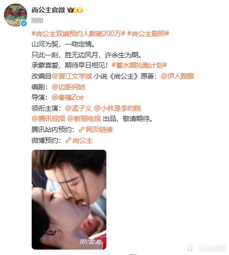 孟子义李昀锐吻戏剧照 孟子义李昀锐《尚公主》预约破200万,期待早日定档开播啦 孟子义李昀锐新剧预约破200万