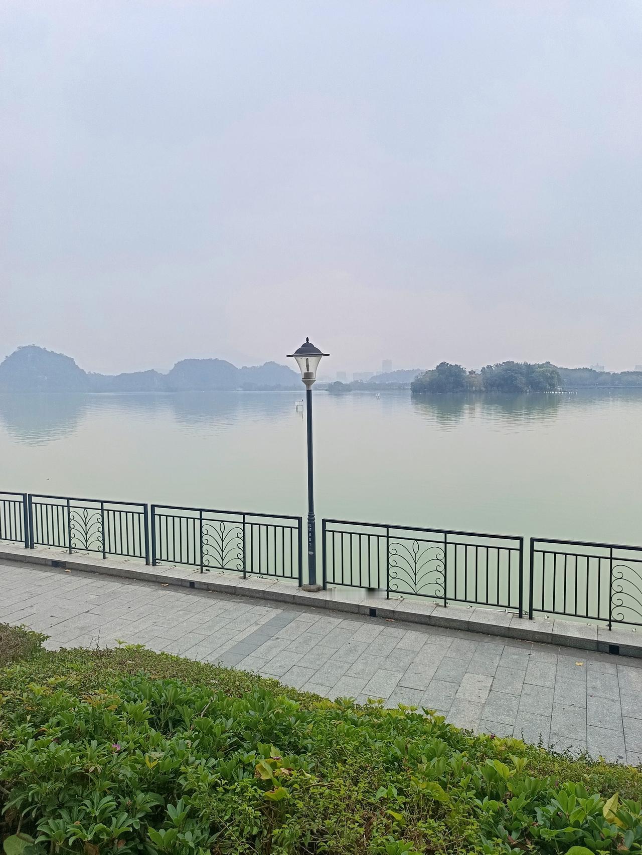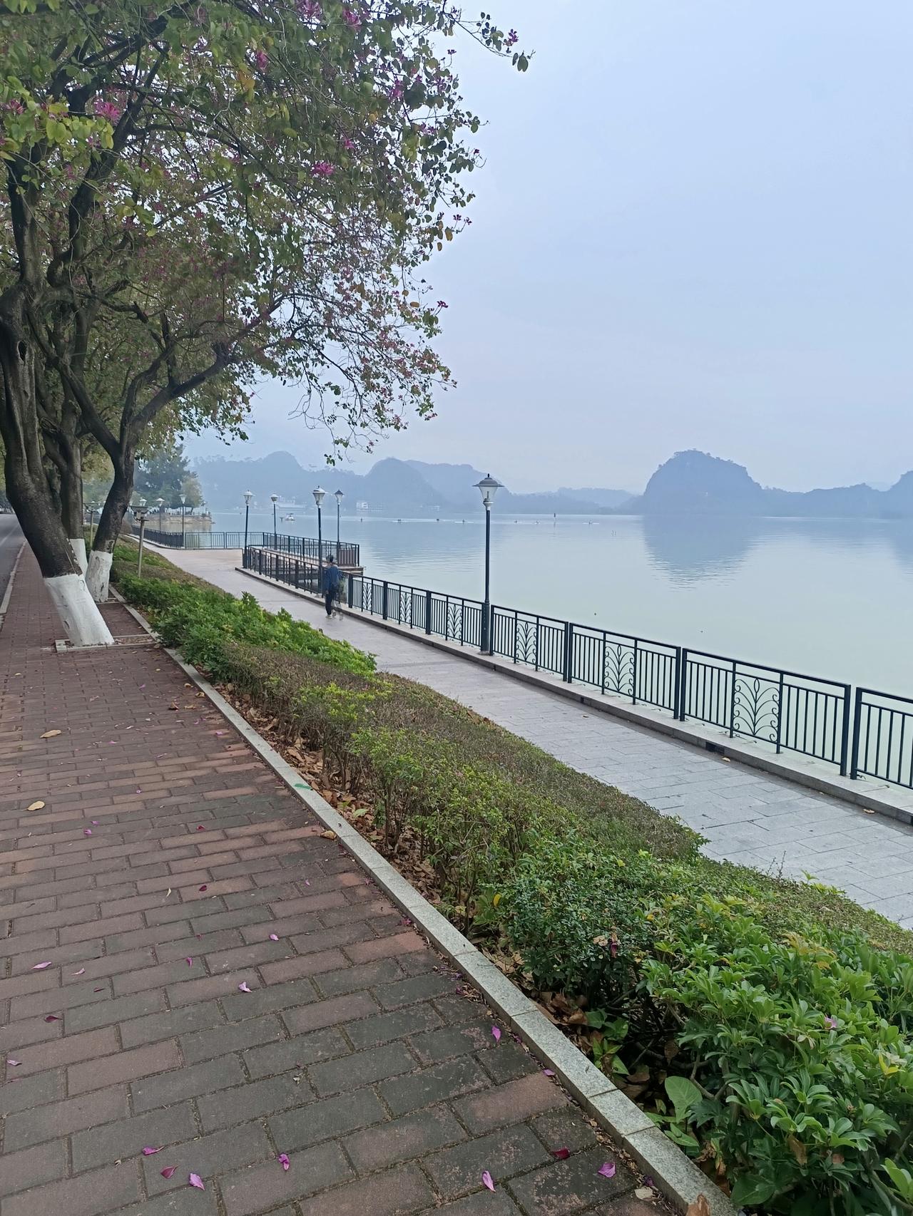 左手紫荆花,右手星湖 你敢相信吗?这里就是紫荊西提 我手上的就是紫荆花了,右边就是星湖 我拍照片的是时候是早上6:00 大部分人都没有睡醒 但是湖上面的水鸭已经出来了 这里确实非常原生态,适合旅游