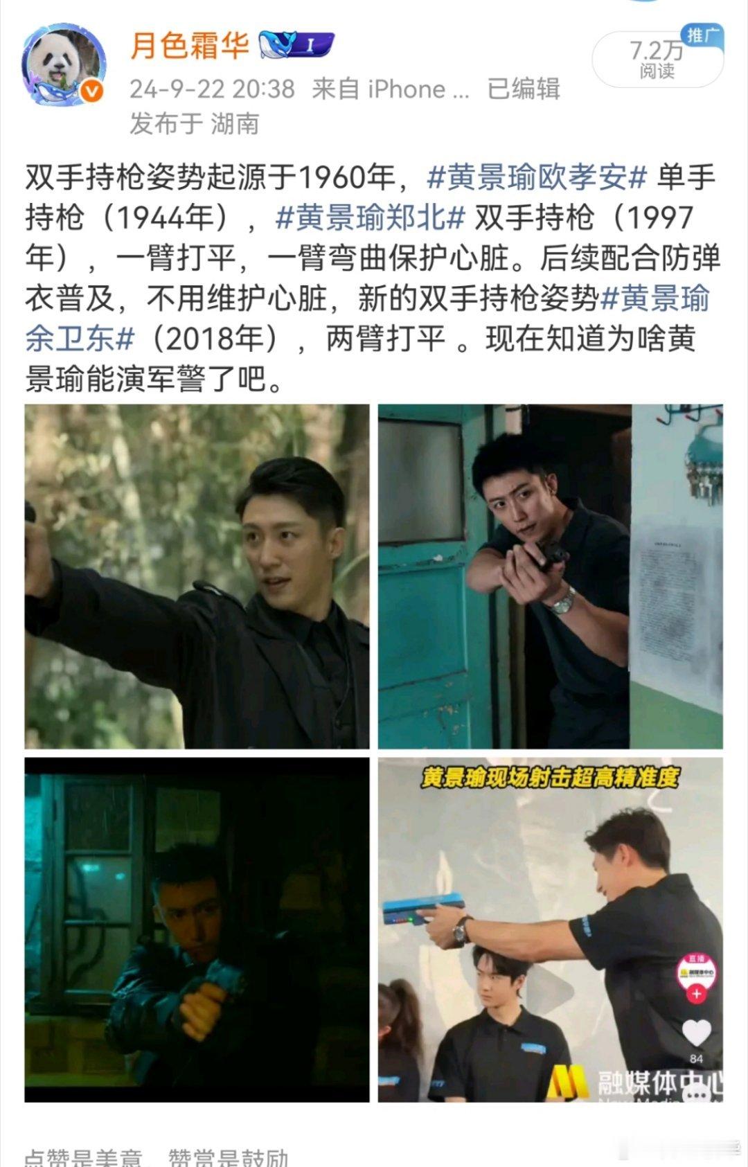 其实《红海行动》的时候,他们的军礼也不是很标准,没有“接”太阳穴/帽檐前2厘米,之前没人太抠细节绝大部分人都不标准,是黄景瑜自己为了对角色负责,后面自己慢慢练标准的,所以也别觉得他是纯粹吃啥《红海行动》的红利。后面别人挑刺《王牌部队》的刺,结果发现他的标准军礼是对照组,对他态度都好了许多。加上他的握枪是根据角色年代,跟同年代的握枪姿势发展完全吻合(之前做过分析)。上次《维和防暴队》宣发,人家现场考他拆卸枪支他都能完成,把真正的维和警察看得一脸满意的微笑,每次拍戏都是提前训练技术动作,可以说黄景瑜每一个作品的热度都是他摸爬滚打辛苦换来的!他不糊弄自己,不糊弄观众,观众也用雪亮的眼睛发现了他认真可爱,不糊弄事,真正的双向奔赴。 罚罪2 黄景瑜秦枫 黄景瑜罚罪2 我就喜欢认认真真的演员,你所有的露面机会都要认准准备,认真演戏,认真上台(他晚会上台表演唱歌也看得出来不糊弄事),给观众带来好的观看体验才是一个好演员。