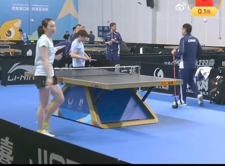 孙颖莎🇨🇳开始赛前训练了[奋斗]! 莎莎上午十一点有比赛,这就和伙伴们一起出发进行赛前训练了,进了场馆后,就和王晓彤进行赛前对练[赞]。 今天上午,莎莎的对阵对手是中国台北选手叶伊恬,此刻和莎莎一起训练的陪练是右手横拍的王晓彤。 这次海口亚洲杯安排的女选手陪练有何卓佳、朱梓予,还有韩菲儿。 莎莎十一点见,莎莎加油[奋斗]!