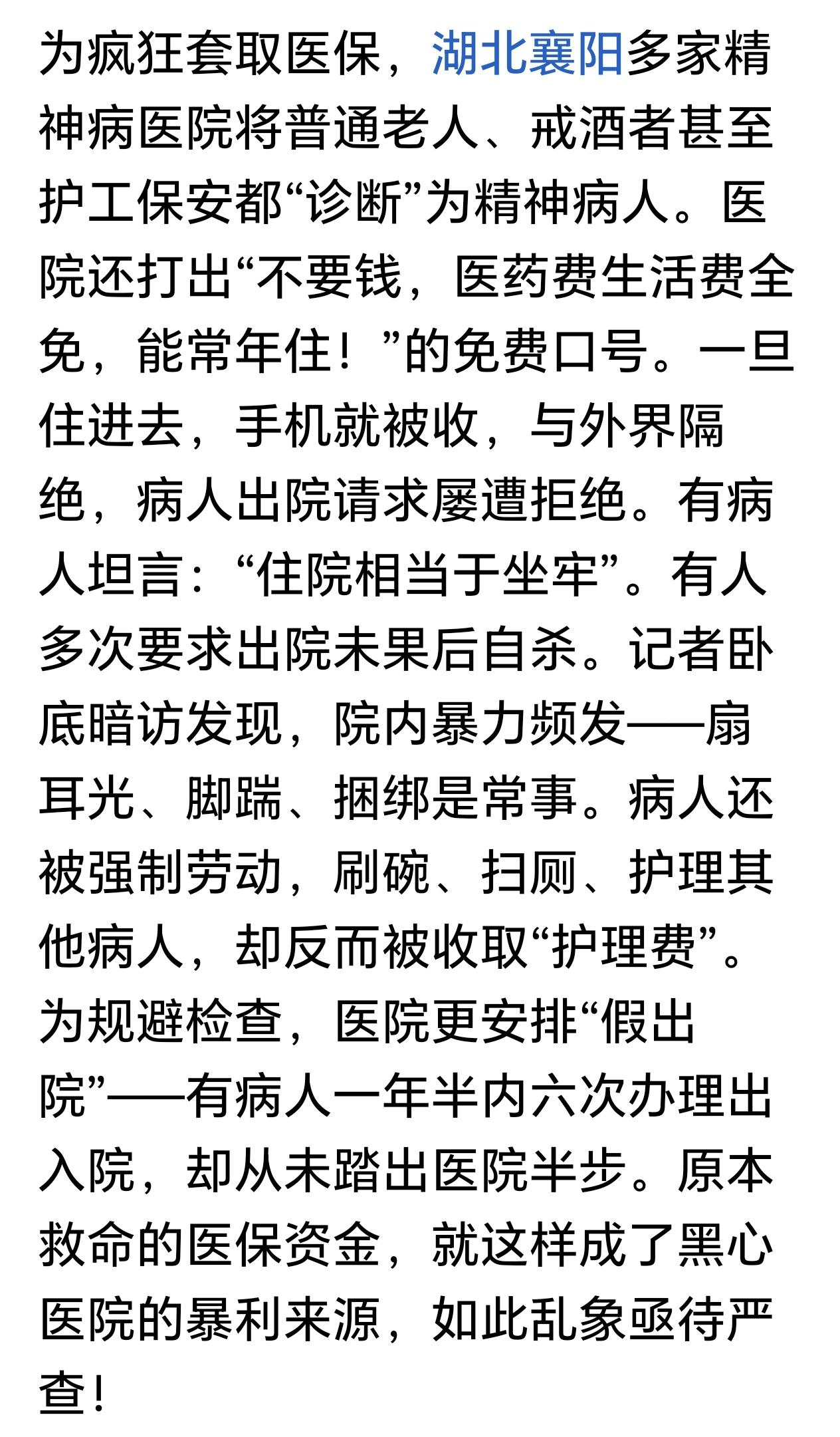 细思极恐啊襄阳精神病医院黑幕一半“病人”是正常人,一个市二十多家精神病院。