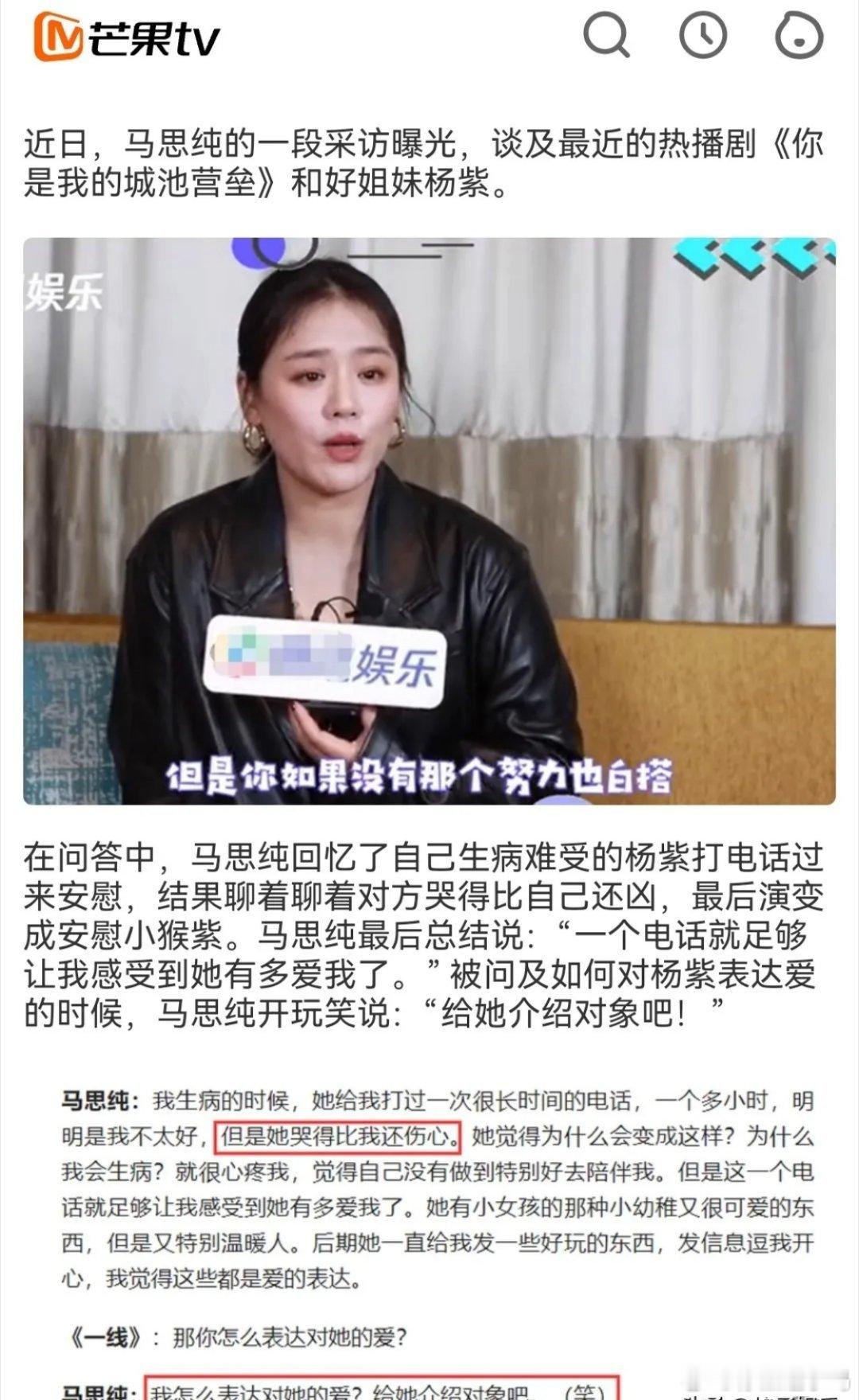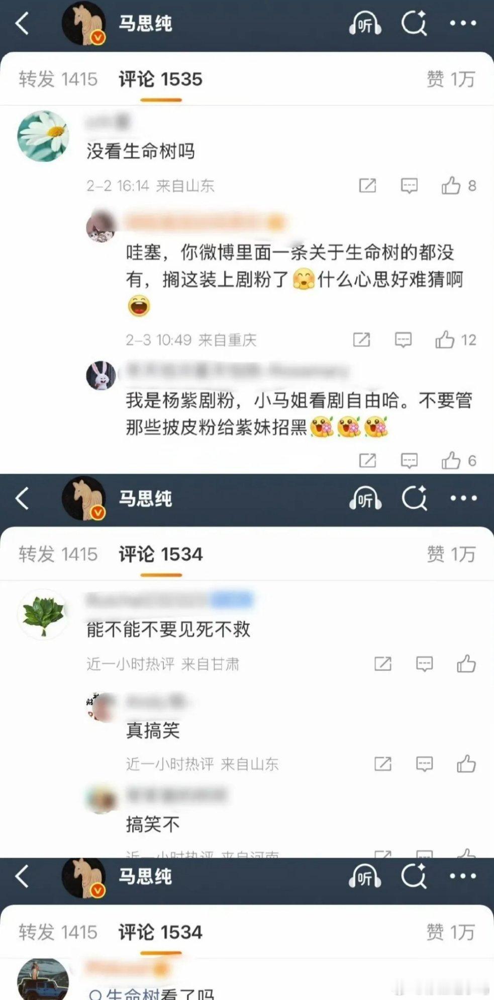 这算塑料姐妹花不?《太平年》和《生命树》最近正打得热闹,杨紫的好闺蜜马思纯呢,突然发微博帮白宇的《太平年》宣传。评论区网友直接炸了,追着问她:咋不给杨紫的《生命树》宣传啊?舆论一闹大,马思纯赶紧又发了条微博宣传《生命树》,那场面,尴尬得能抠出三室一厅。之前马思纯采访里还说过,自己得抑郁症那会儿,全靠杨紫陪着安慰,俩人关系明明挺好的。按说这俩剧撞档期正对着干,作为闺蜜,她确实该端平一碗水啊,不然多让人多想。