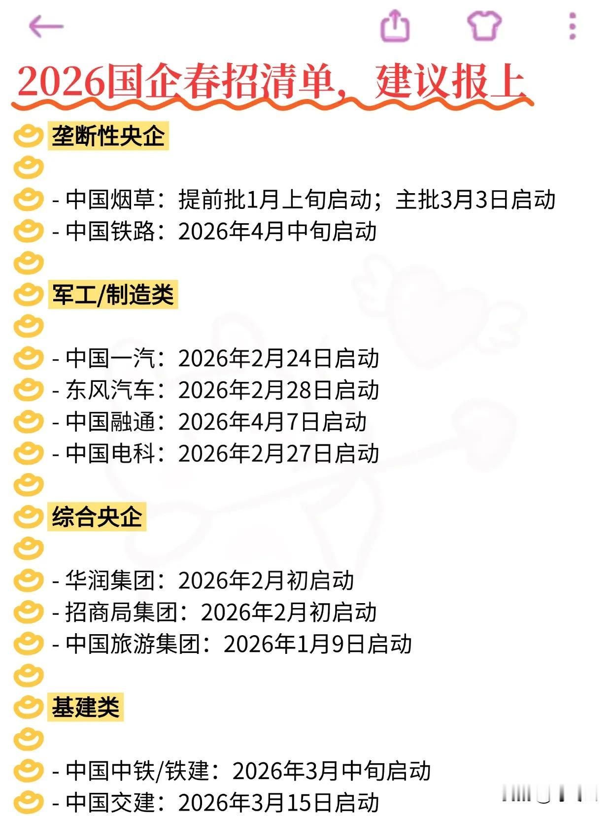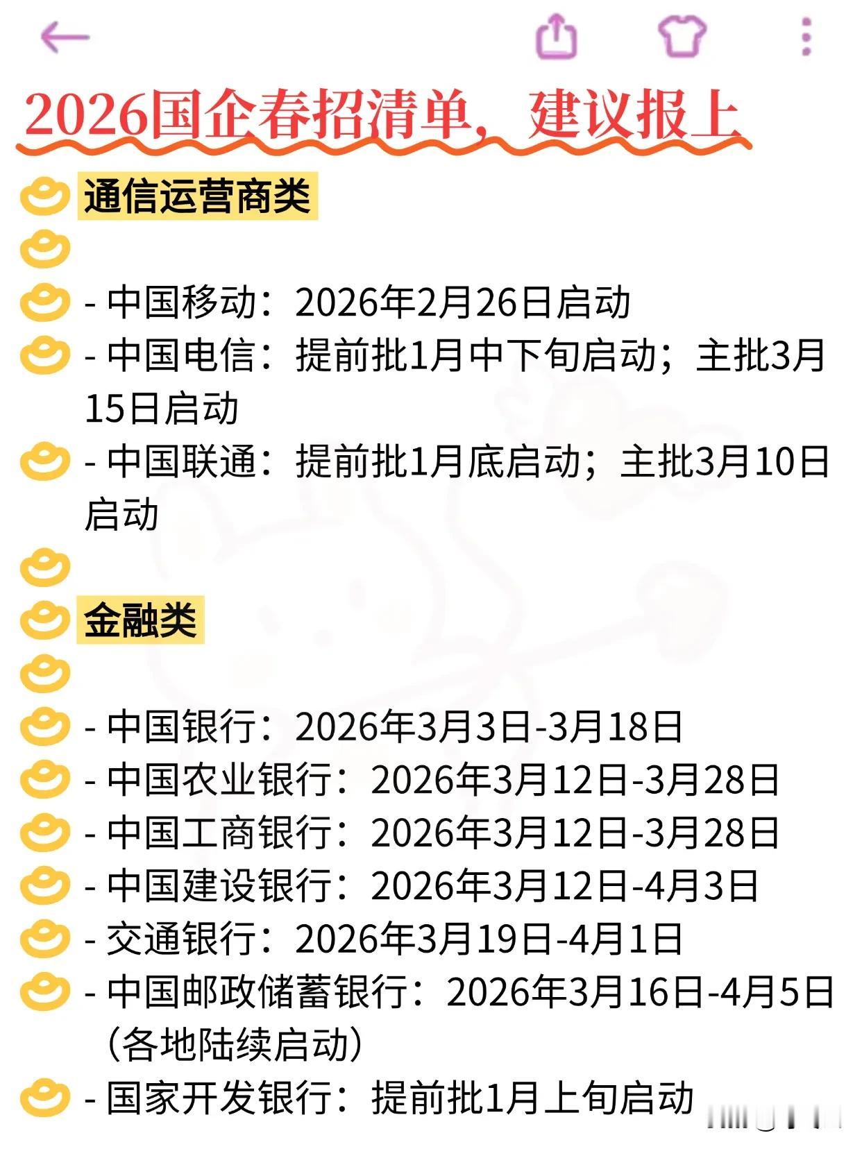 2月招聘汇总!最新35家央国企招聘时间汇总合集!都是非常好的单位,岗位稳定福利好!多图汇总合集,避免忙碌查询,收藏本文即可!国家电网、五大发电厂、金融类企业,通信类企业,军工央国企等等,都在这里了!为什么建议选择央国企,@叮咚云 帮你解读重点和职业指导的答案都在后面了!速速围观揭秘详细内容![招财进宝][点亮平安灯][点亮平安灯] 国企的招聘信息在哪里查 欢迎关注@叮咚云 将优先为粉丝职业规划指导,为你定制最适合的就业择业方案!欢迎留言交流讨论。[来看我][来看我] 免责声明:图片来自网络,仅供参考!