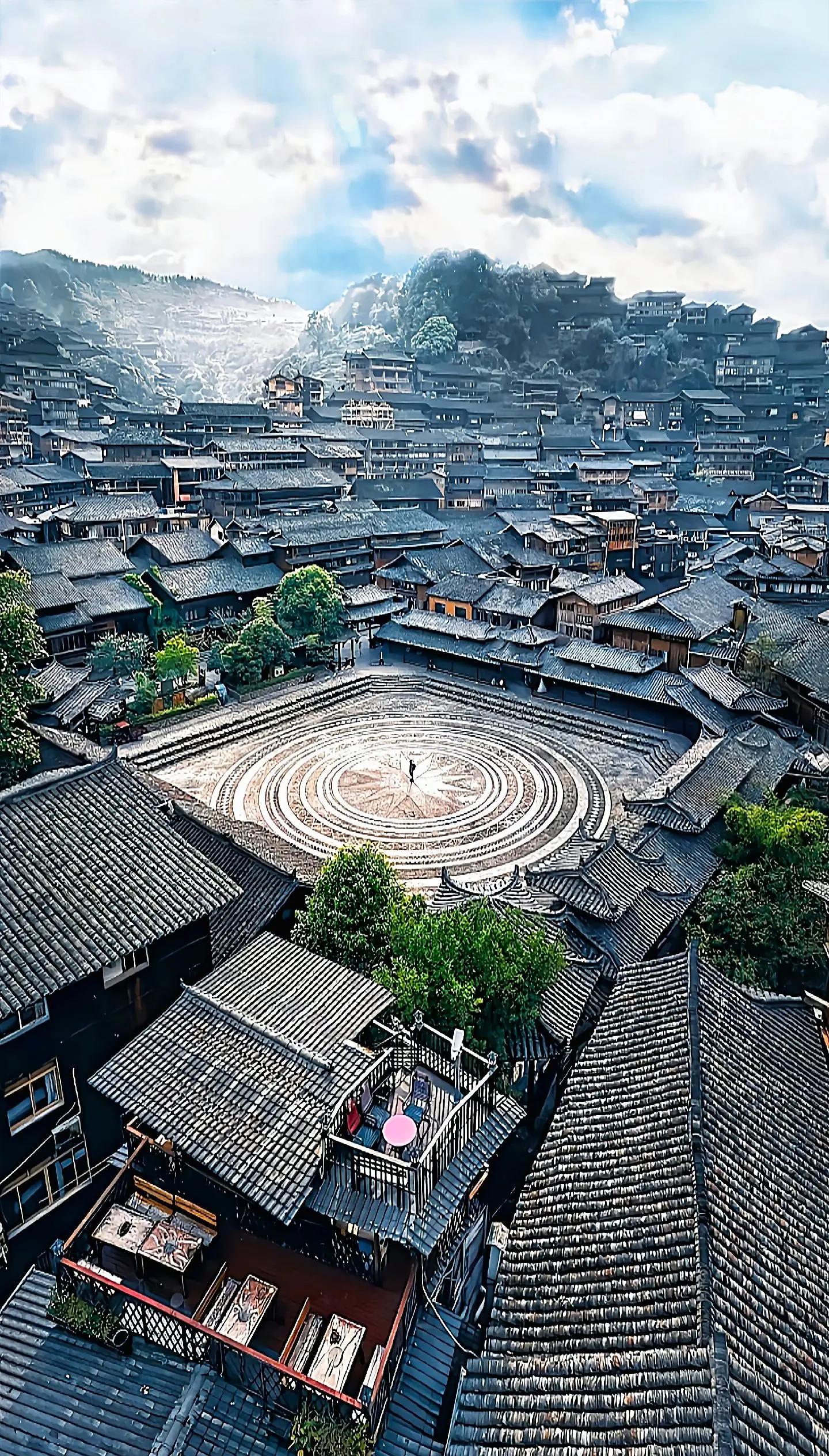 2️⃣.郎德上寨,木质风雨桥、吊脚楼错落有致,铜鼓坪有芦笙表演。