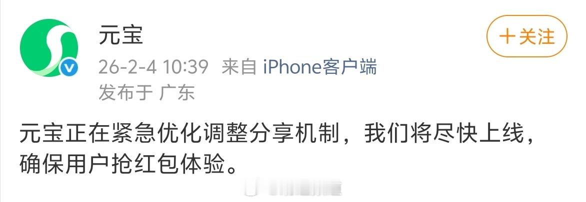 微信派:“我们收到用户针对元宝的反馈和投诉,其相关春节营销活动存在通过‘做任务’‘领红包’等方式诱导用户高频分享链接到微信群等场景,干扰平台生态秩序、影响用户体验、对用户造成骚扰。经研判,对元宝的违规链接进行处置,限制其在微信内直接打开。相关处置措施即日生效。”