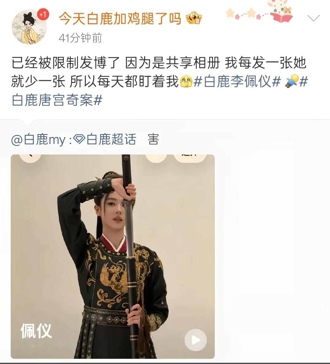 呵呵上一次被限制,还是白鹿要播招摇的时候。招摇的狂,李佩仪的疯,一个女魔头,一个小疯子,2月5日优酷的唐宫奇案真的很让人期待。呵呵被白鹿限制发博了