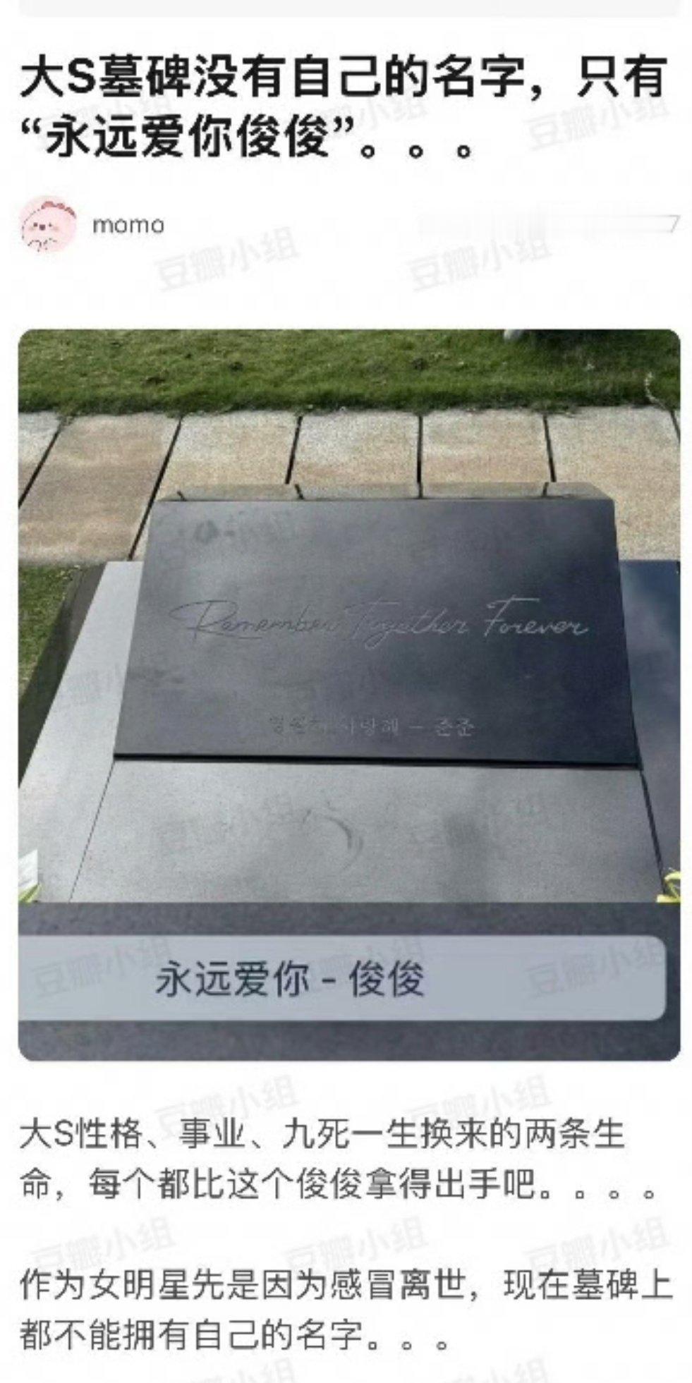 她有那么多作品,有那么多值得称赞的善举和品格,最后只留下了某个男人心爱的女人这种碑文,墓碑上连自己名字都没有,只有“永远爱你俊俊”几个字。到底谁在感动啊?这不纯粹是光头自嬷的工具人吗?