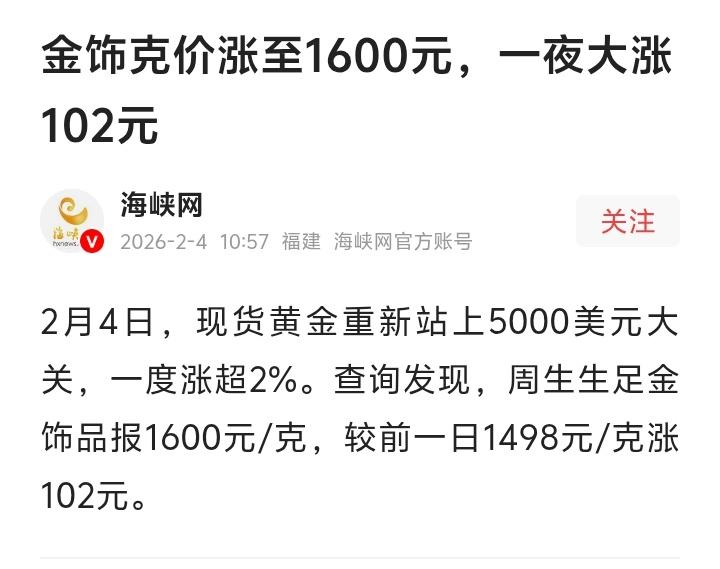 金价一夜狂飙102元!福州周生生金饰冲上1600元/克,大妈翻出压箱金镯笑醒,年轻人却哭着算崩了结婚预算! 清晨的金店还没开门,柜台里的价签已经悄悄换了一轮。周生生足金饰品每克1600元,比昨天足足涨了102元。这不仅是数字的跳动,更是无数人财富记忆的刷新。那些压在箱底的金镯子,突然成了最沉默的赢家。 国际金价单日涨幅创下2009年以来纪录,冲破5000美元大关。全球央行持续购金,乱世中黄金仍是硬通货。但这波行情里,有人欢喜就有人愁。准备结婚的年轻人看着“三金”预算瞬间超标,默默把购物车里的金饰又删了一件。 福州东街口一家金店里,几位阿姨围着柜台议论纷纷。“早知道去年多买点放着了!”“现在卖镯子是不是时候?”黄金暴涨背后,是普通人对抗通胀的朴素渴望,也是一场关于时机和运气的心理博弈。每一克黄金,都承载着对安稳生活的向往。 翻翻朋友圈,有人晒出十年前买的金条,有人后悔去年没下手。黄金成了社交货币,话题从款式工艺转向了保值增值。但别忘了,金饰出手有折价,狂热跟风可能换来一地鸡毛。理财博主开始紧急提醒:别把首饰当投资,品牌溢价和工费都是成本。 这波行情里最淡定的,或许是那些把黄金当传承的老一辈。他们记得金价起伏如四季,藏金于匣,传的是心意而非价格。就像一位网友说的:“妈妈给的镯子,戴的是牵挂,谁舍得论克卖?”黄金背后,是人情与时光的重量。 市场分析师已经开始预测下一波高点,期货盘面红得刺眼。但对普通人来说,黄金的意义从来不只是K线图。它可能是婚礼上的祝福,是父母攒下的疼爱,是自己奖励自己的仪式感。金价会跌宕,但这些情感价值永远升值。 当金价数字疯狂滚动时,或许我们该问自己:你买黄金,买的究竟是什么?是避险的资产,是心仪的饰品,还是一份对抗时间的安全感?答案没有对错,但清醒比跟风重要。毕竟,消费可以冲动,但生活需要踏实。 (来源:海峡网、界面快讯、小红书网友热议) 金价暴涨 黄金理财