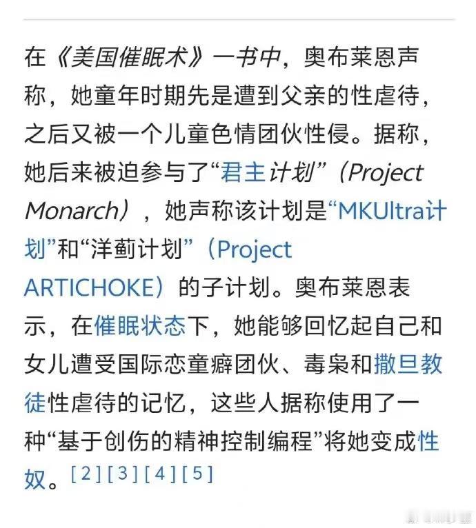 恶魔。 他们通过精神控制系统性的编程,或者叫仪式性的虐待,让小小的孩子彻底奴隶化