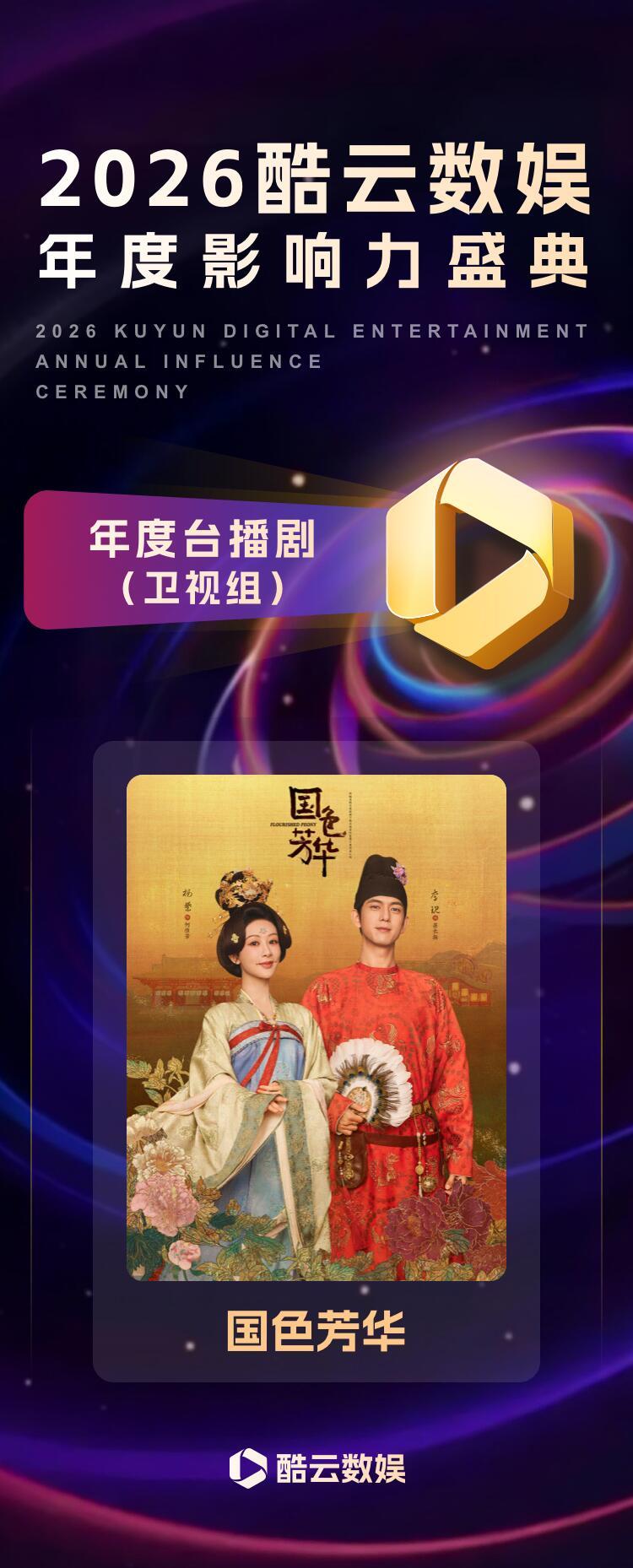 杨紫酷云荣誉战报:主演《国色芳华》获年度热度剧集、年度台播剧(卫视组)荣誉。