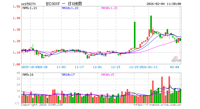 2月4日,截止午间收盘,创业板200ETF南方(159270)跌1.80%,报1.200元,成交额2243.68万元。创业板200ETF南方(159270)重仓股方面,香农芯创截止午盘跌6.79%,天华新能跌1.15%,赛微电子跌2.74%,上海瀚讯跌2.12%,光库科技跌1.76%,汉得信息跌8.39%,鹏辉能源跌1.69%,星源材质跌1.61%,太辰光涨3.06%,四方精创涨3.02%。