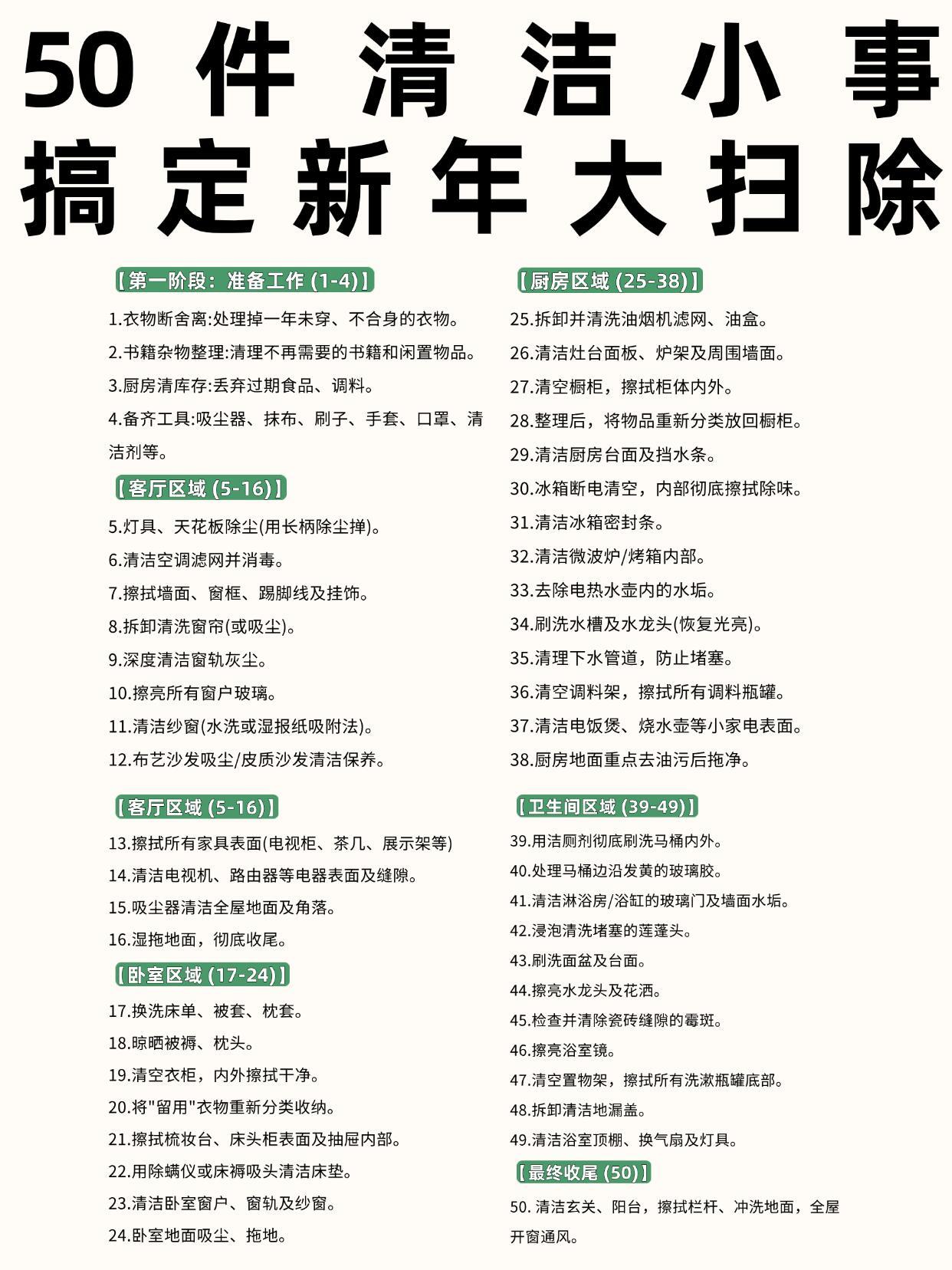 50件家清小事清单,搞定新年大扫除。家清也是一种实力,可以带来好运36岁男子凭实