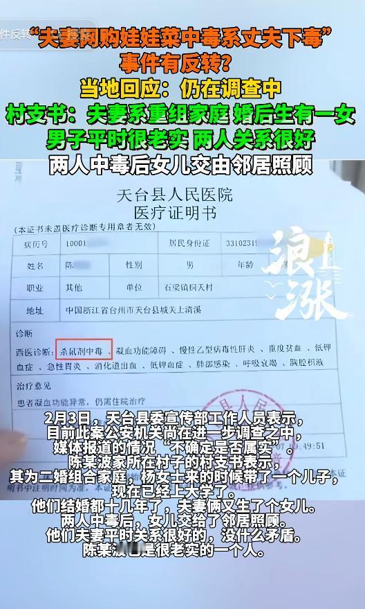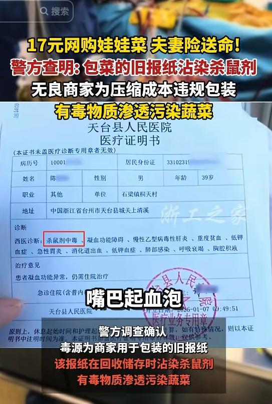 娃娃菜中毒真相! 律师谈吃娃娃菜中毒夫妻被抓:最高判刑十年以上,且共谋骗赔主观恶性较大,需赔偿商家、平台经济损失 娃娃菜中毒事件,最近可谓搅动了整个网络。 本是一桩看似家庭食物中毒的悲剧,竟然是两口子自导自演的惊人闹剧。 从网购娃娃菜、中毒入院、报警检测,再到警方调查、律师解读,一步步真相浮出水面,背后隐藏的竟然是“夫妻联手骗赔”的非法勾当。这不是戏剧情节,是现实中的一场“疯狂自残换赔偿”的荒唐“表演”。 整件事的起点,是在2025年12月16日。杨女士在电商平台上买了一箱娃娃菜,收到货当天她跟丈夫吃了,没多久两人就进了医院。 口腔出血、呼吸困难,ICU住了好几天。一开始传言说是报纸包装惹的祸,有可能沾了老鼠药,大家一下子把矛头指向了商家和平台,一点风吹草动都让大家神经绷紧,买菜都不敢随便点下单。 后来夫妻俩开始找商家谈赔偿,找平台闹事,态度坚决,一副“受害者”的模样。可事情的反转,从警方开始介入那刻,就已经悄悄开始。 天台警方立了专案组,现场勘查、毒物检测、调查走访,没几天就有了惊天的发现——不是菜有毒,是人下毒!而且不是别人,就是他们自己! 一对夫妻为了一笔赔偿金,竟然决定“自己下毒毒自己”,不惜砸下自己的健康,下到老鼠药,制造“误食中毒”的假象,用来骗商家和平台的钱。 他们知道杀鼠剂后果严重,知道这样做会住ICU、会流血、甚至可能死,但还是铤而走险、步步算计。 他们的目标清晰,很简单——骗钱。这哪是寻常人干得出来的事?这简直是一场冒着极端风险的赌博,一场挑战法律、伦理、人性的“黑色荒诞剧”。 更让人心寒的是,除了他们的肉体疼痛,还有社会的资源被白白浪费。想想那些被占用的ICU病床、医生护士三班倒的抢救、商家无辜背锅的损失,还有平台声誉的巨大影响,这场“自毒大戏”杀伤面太广,负面影响实在太大。 甚至村里还透露,本来计划给这一家申请低保,现在全泡了汤。如果不是警方查得快,把真相揭得及时,恐怕还真有不少人会为他们“叫屈”。 说到底,夫妻之间可以共苦同甘,但不应同谋违法。他们一开始可能觉得一切都很完美,没想到聪明反被聪明误。 正如律师所说,敲诈勒索数额特别巨大的,处十年以上有期徒刑,而且数额多还恶性大,这事注定不会轻判。两人伤害了自己,更误人误己,如今还得赔偿商家、平台的损失,身陷囹圄,家人也跟着受苦。孩子怎么办?家怎么办?这不是“赌一把”能承受的后果。 从杨女士买娃娃菜那天起,他们就已经走上了一条不归路。自己动手制造“中毒现场”,口口声声要讨说法,其实每一个环节都在撒谎,都在演戏。 不仅挑战了法律底线,更突破了我们认知中的道德底线。谁敢相信,有人为了钱,能骗到这种程度。看似温馨的一家,平日其乐融融,竟能策划出如此毒计,让人大跌眼镜。村支书说他们感情很好,是啊,“同心协力毁前程”也算是一种“恩爱”。 商家最终崩盘,平台被拖累,一整套供应链和信任机制,都被这一对夫妇狠狠撕裂。恶意碰瓷、蓄意讹诈、浪费公共资源,这样的人不仅令人生气,更让人不得不警觉:当下社会里的信任,到底还能支撑多久? 行为像这样破坏信用的,不止是失信,更是在公众面前打了一记响亮的耳光。人人喊“维权”,可不是人人都有权借“维权”的名义嚣张地作恶。 这次事件,不再是一个单纯的“食品安全警报”,它暴露的是,极个别人心中“巨额赔偿”诱惑下对良知的背弃。 这类风气不止一宗,早几年假摔、碰瓷、恶意差评,基本模式如出一辙。这背后是不是该深思,我们的惩戒机制,是否足够有威慑?我们的监管体系,是否应该加大防范机制,对一些可能出现恶意炒作维权的行为有所防备和介入? 当然,事件发展到这种地步,有点令人心碎。尤其是了解到,这个家庭里还有个上中学的女儿。父母一个进医院一个进看守所,小姑娘何去何从? 本该是寒假温馨日子,她却要面对这个残酷真相。成年人一时的错误,孩子却可能因此改变命运。这才是真正的家庭破损,不是物质上的,是精神上的残缺。 如今警方案情已通报,两人被刑拘,后续还将追究民事赔偿。商家有权继续追责,要求弥补店铺被下架、名誉受损等全部损失。平台也有理由问责,谁愿自己成了别人作假的工具?一切的一切,种的因结出的果,都是自找。 最后想说一句,任何用生命当筹码的行为,最后都不会成功。这不是什么“聪明反被聪明误”的笑话,这是用自己的身体演了一出伤天害理的悲剧。 人人都想过上好日子,但靠的是奋斗,不是诈骗。生活再难,也不能走歪路。这对夫妻的下场,就是最好的警示。 你怎么看?你是否也被这事件震惊到了?欢迎留下你的评论,一起说说你眼中的“道德底线”和“法律红线”!
