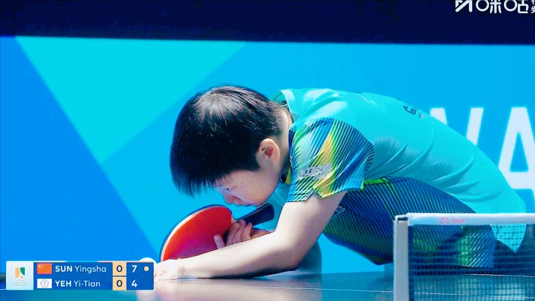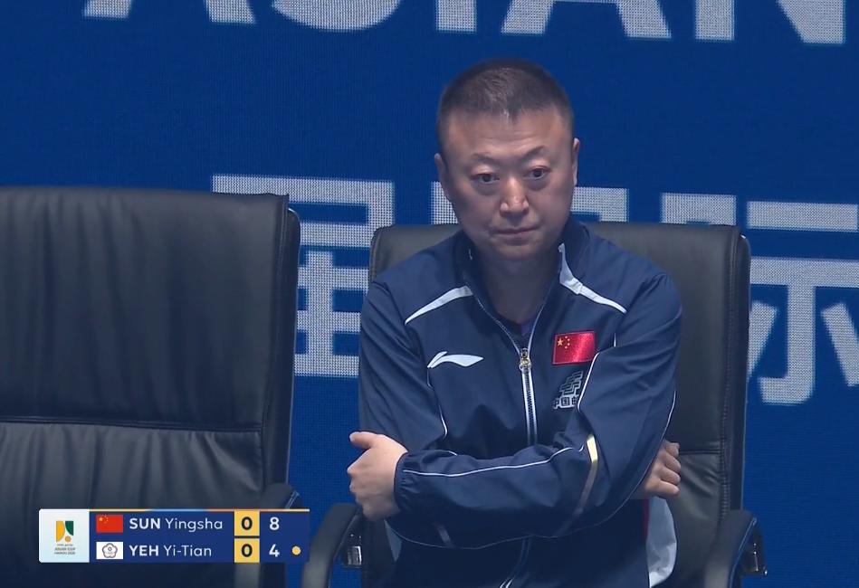 吓我我了!孙颖莎开局连续接发球失误, 开局1:3落后! 还好莎莎底蕴还是深厚, 在自己发球轮, 四个发抢得分, 4:3反超叶伊恬。 随后找到了比赛的感觉, 7:3领先。 莎莎在相持阶段, 还是有些手生, 被叶伊恬追到了7:8, 第一局孙颖莎反手失误较多, 不断用手模拟动作, 关键分孙颖莎稳稳拿住, 11:8拿下。 本次现场指导怎么是马琳了?