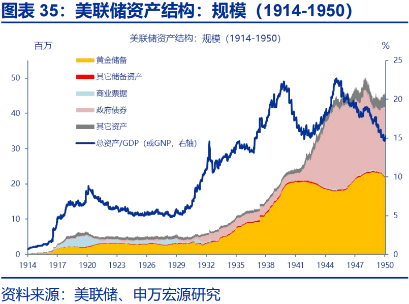 美联储自1914年诞生以来便在持续扩表,但其中只有四个时间段是(类)QE式扩表。所以,扩表是常态,但QE式扩表是“非常态”。1932年《银行法》赋予美联储以政府债券为担保发行联邦储备券的权力。从1932年至二战爆发,美联储在公开市场买入国债方面一直非常谨慎。因为,以国债为抵押品发行货币违反了真实票据原则。4次QE案例均发生在极端事件冲击之后:1929-1933年“大萧条”、1941年美国参加二战之后、2008年雷曼破产之后和2020年公共卫生事件冲击。这4个案例均出现在降息至零或接近零之后。而其它时段,比如金本位时代(1914-1945年)黄金流入导致的扩表、以及二战后至2008年之前购买国库券导致的扩表都不是QE、也非零利率时期。