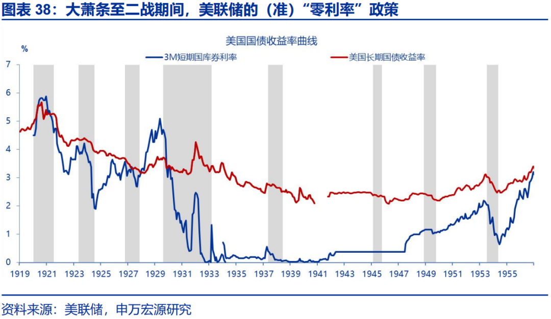 在非战争或非零利率状态下,美联储极不可能通过QE或YCC压降美债利率。若不考虑热战这一极端场景,全球央行的政策实践表明,零利率是QE或YCC的必要条件。逻辑非常朴素,QE或YCC的目标是降低长端利率,而实现该目标最有效的方式是降息至零(或负)。