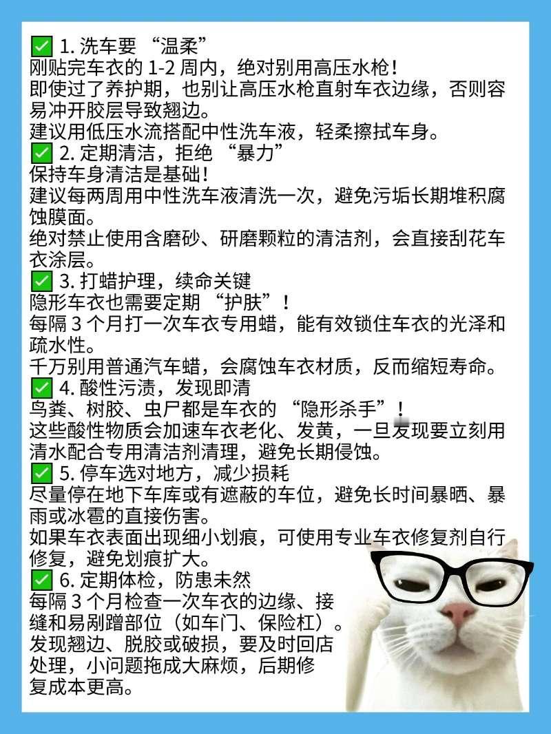 车主必存!隐形车衣长效养护攻略刚贴完隐形车衣就上高速,结果卷边、起翘了?友友们,贴了车衣也不能 “裸奔” 造啊!一篇帖子手把手教你把车衣用到寿终正寝,让每一分钱都花得值!【来自懂车帝车友圈】