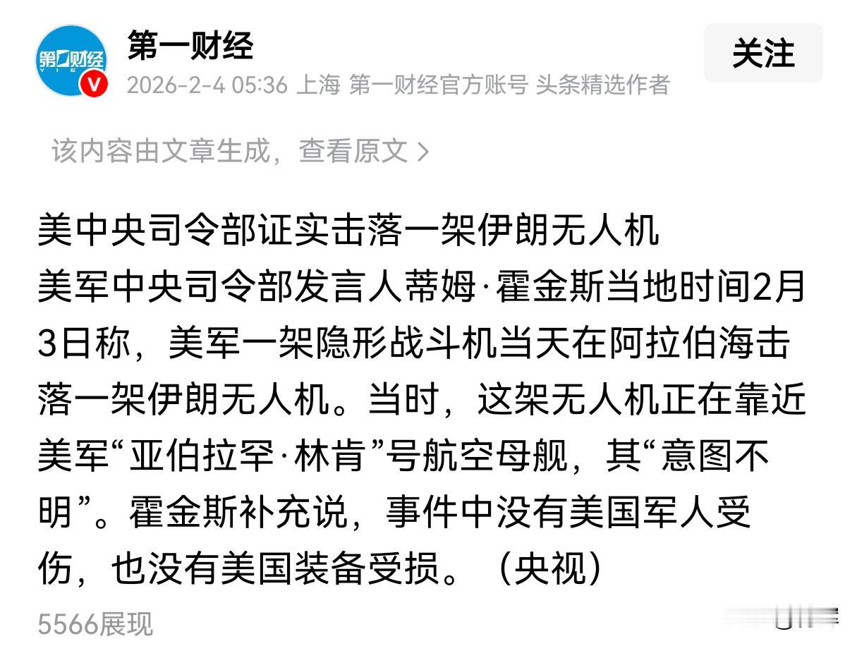 伊朗飞机被击落,炮艇逼近美国轮船!美伊开始相互试探了 目前伊朗和美国之间的局势已经发生了新的变化,2月3号当天,美军证实击落了一架来自伊朗的无人机。当时这架无人机正试图逼近美国的林肯号航空母舰,而且意图不明。所以美军出动第五代战斗机直接开火将其拿下。对于这件事情,伊朗方面的反应则是自己的无人机在公共海域进行合法合规的侦查,随后失联,但飞机传回了拍摄到的相关画面。 无人机被打下来之后,在霍尔木兹海峡,一艘悬挂美国国旗的油轮突然遭到多艘伊朗炮艇的快速逼近。这些炮艇通过无线电向油轮喊话,要求对方停船,自己要登船。美国油轮不予理会,提高速度,按照原有航向前进。随后一艘美国军舰赶来,伊朗炮艇撤离。 从同一天的这两件事情来看,美国和伊朗这个两个国家正在进行相互的试探,美军打下无人机,这已经属于实质意义的开火,想看一下伊朗的反应。而伊朗派出炮艇逼近美国人的油船,也是想看看美国的反应。 总体来说,我认为,两国目前确实是剑拔弩张,但是双方似乎都不想大规模的开打。其实现在这种局势如果美军大举入侵伊朗的话,对中国不是坏事。因为美国绝对不可能通过闪电战干掉伊朗,战争会一定程度的旷日持久,美国付出的精力和成本会成倍增加。从大国博弈的棋盘上来看,此消彼长,亘古不变。