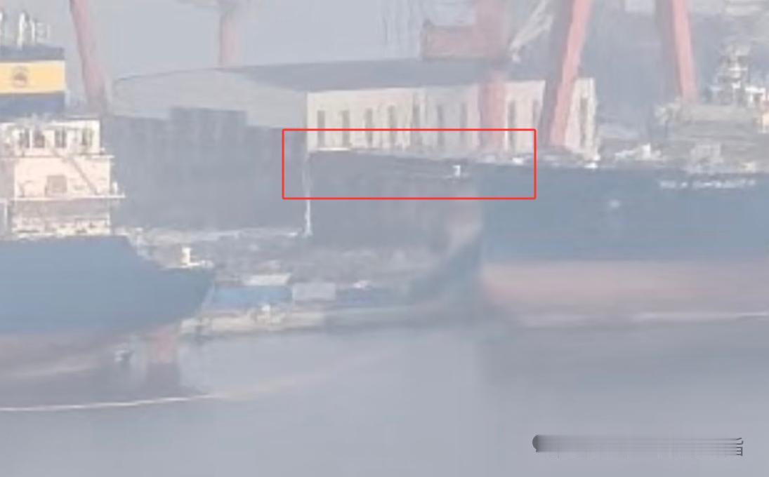 太快了!北方干船坞里再传大动作,004的机库分段盖板子了!