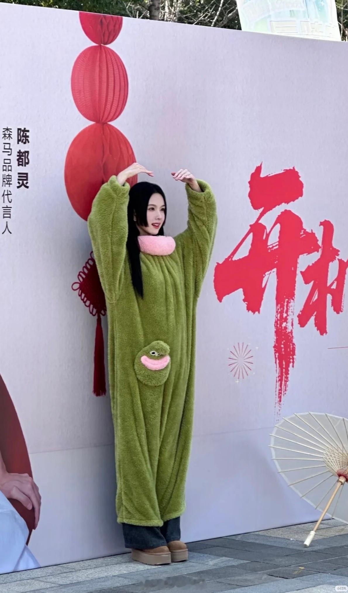 陈都灵穿绿色玩偶服只有陈都灵信了大家都穿玩偶服 好抽象的嘟嘟