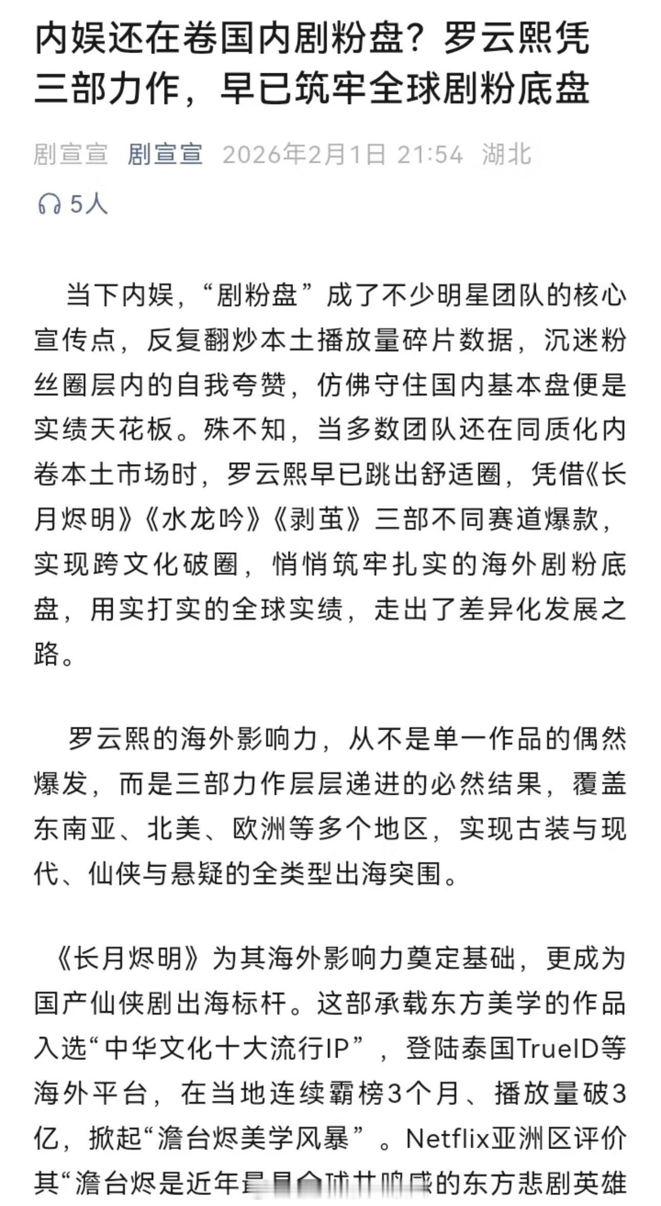 内娱还在卷国内剧粉盘?罗云熙凭三部力作早已筑牢全球剧粉底盘