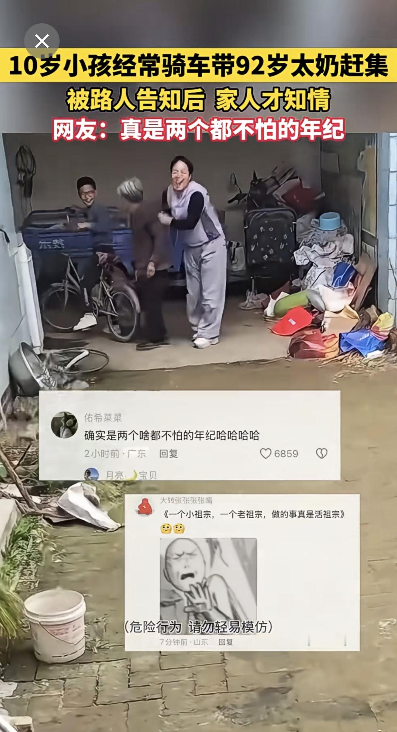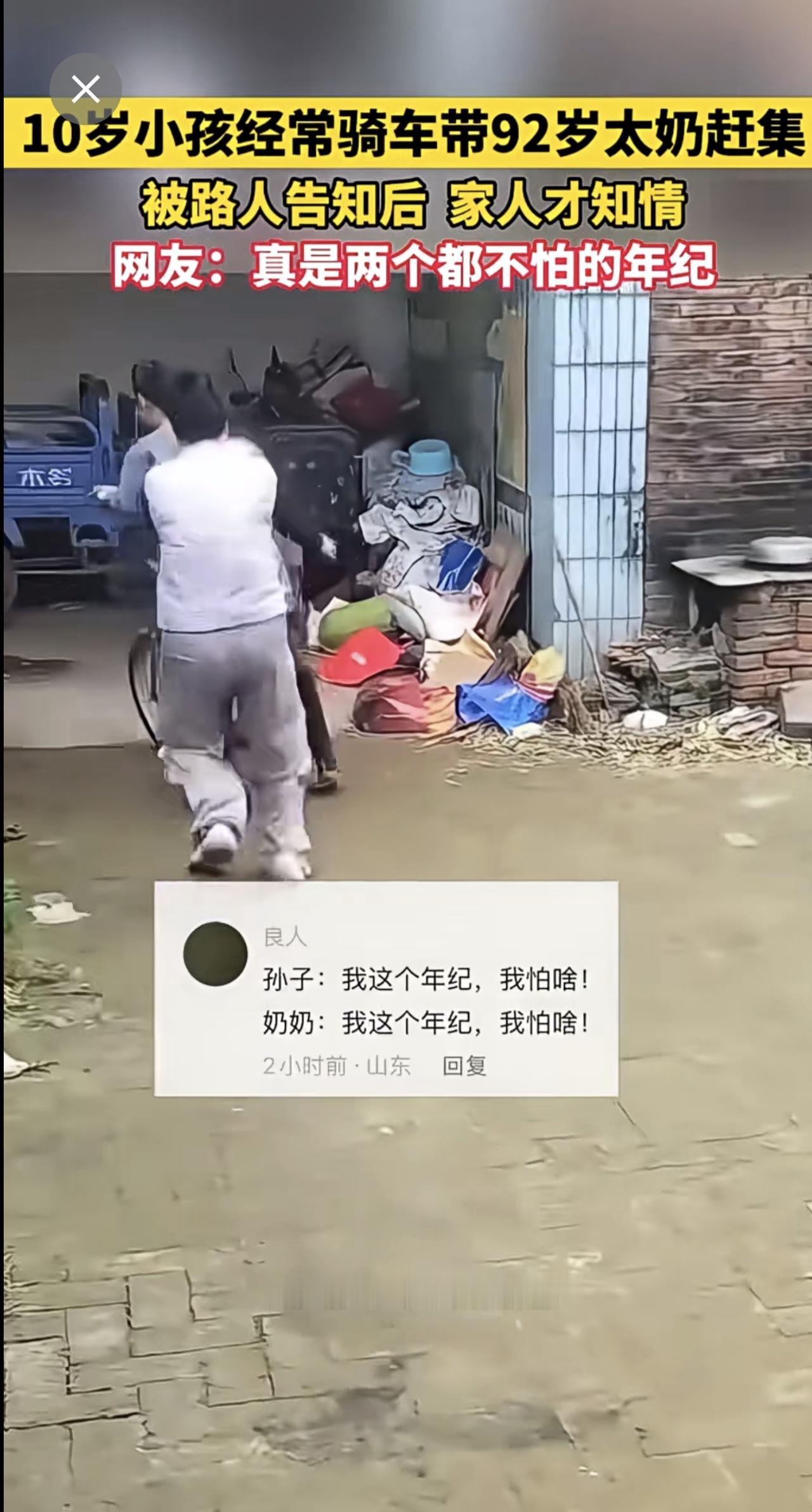 十岁小孩骑车带九旬太奶赶集 网友:真是两个都不怕的年纪(来源:开心快乐每一天)记