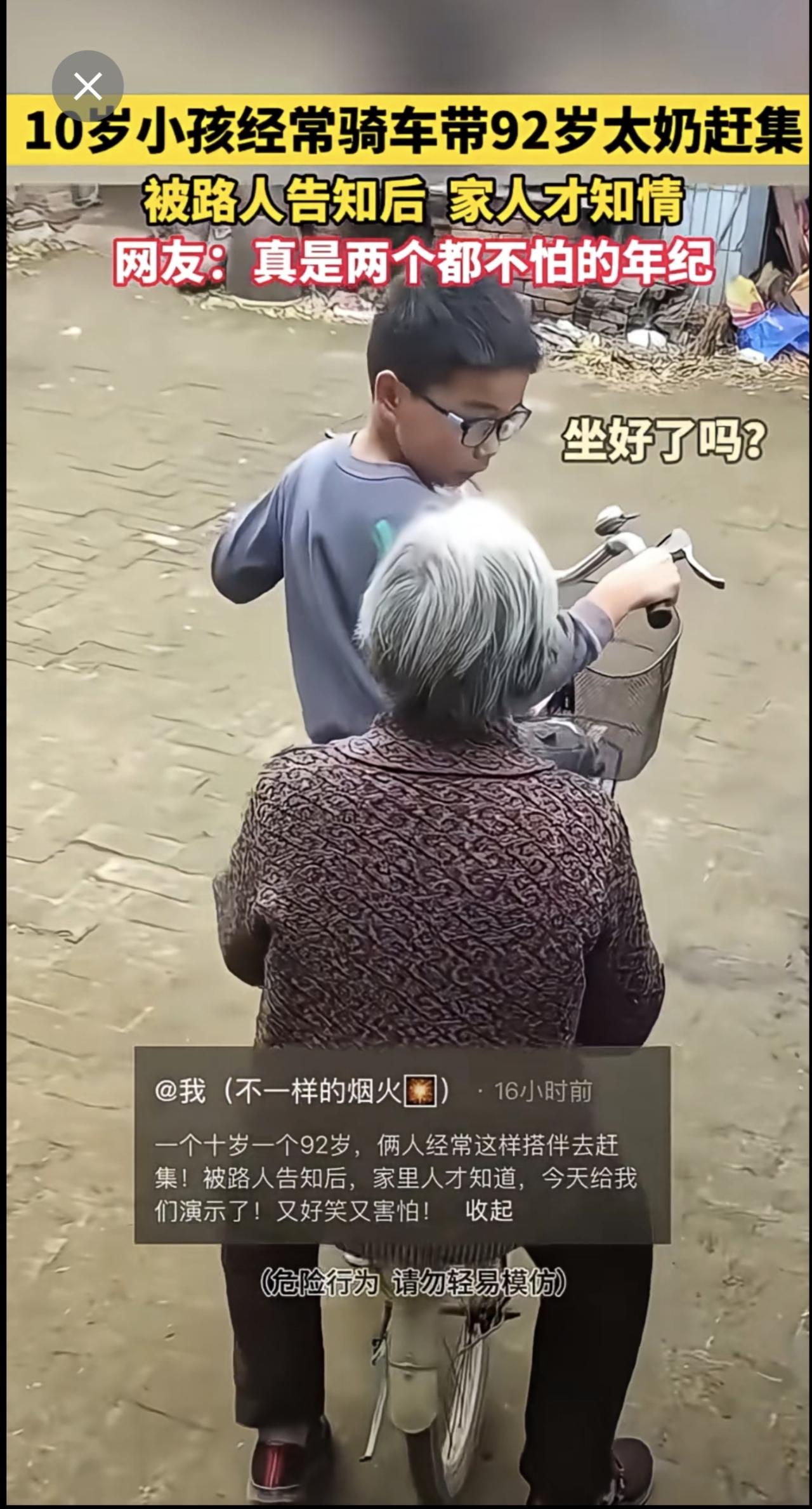 十岁小孩骑车带九旬太奶赶集 网友:真是两个都不怕的年纪(来源:开心快乐每一天)记录美好生活