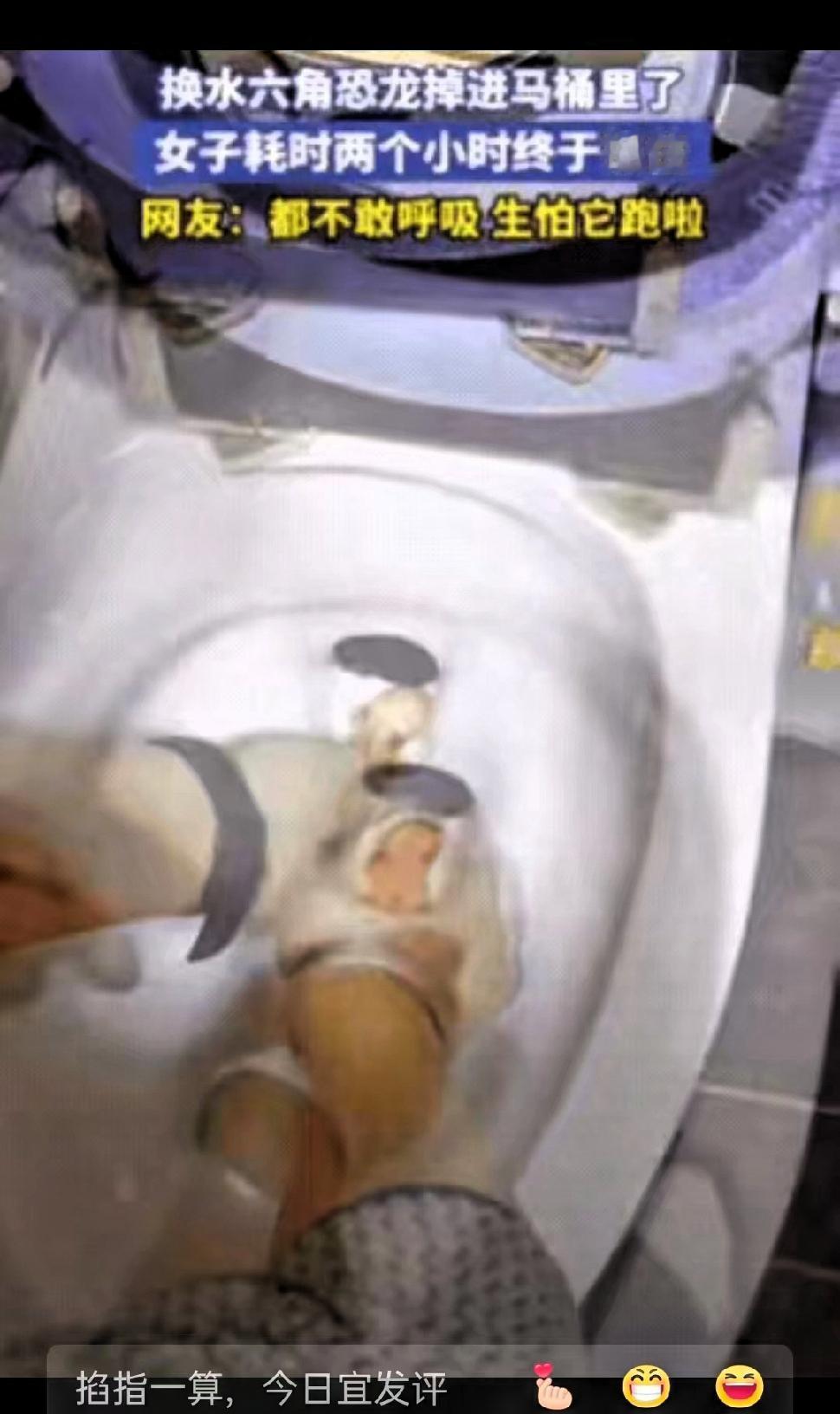 不忍直视!吉林一女子上完厕所,直接将手伸进马桶,一扣就是2小时,原来她是在救不慎掉进马桶的六角恐龙。 女子像往常一样给六角恐龙换水,端着小杯子准备将它放回饲养盒,没成想手一滑,杯子磕到旁边,六角恐龙顺着杯沿滑进了马桶,速度快得她根本来不及伸手去接。 她赶紧蹲下身查看,万幸的是,六角恐龙没有立刻冲进管道深处,而是乖乖趴在马桶洞口,露出小脑袋一动不动,像是被这突发状况吓住了。 女子看着马桶里的小家伙,赶紧琢磨解救的办法。直接伸手抓吧,怕一使劲把它推得更深;找夹子夹吧,家里没有合适的工具,还容易夹伤它娇嫩的身体。思来想去,她想到家里有细绳子,或许能试着把小家伙“钓”上来。 她赶紧找来绳子,小心翼翼地蹲回马桶边,把绳子轻轻放在六角恐龙旁边试探。可六角恐龙不太配合,要么一动不动,要么稍微挪动一下身子,女子只能赶紧停手调整姿势。这一蹲就是2小时,她全程不敢大声喘气,眼睛紧紧盯着马桶里的小家伙,反复调整绳子的角度,耐心引导。 最后,女子终于用绳子套住六角恐龙,将它安全拉了上来。事后有人说这件事很有趣,也有人夸赞女子有耐心。在我看来,这不是什么搞笑的场面,而是体现了一个人对小生命的珍视。愿意为了一只小宠物花费2小时的时间和精力,这份认真和温柔格外打动人。 生活里的温暖瞬间,往往就藏在这些看似不起眼的小事里。认真对待每一个小生命,用心处理每一件小事,本身就是一种难得的生活态度。