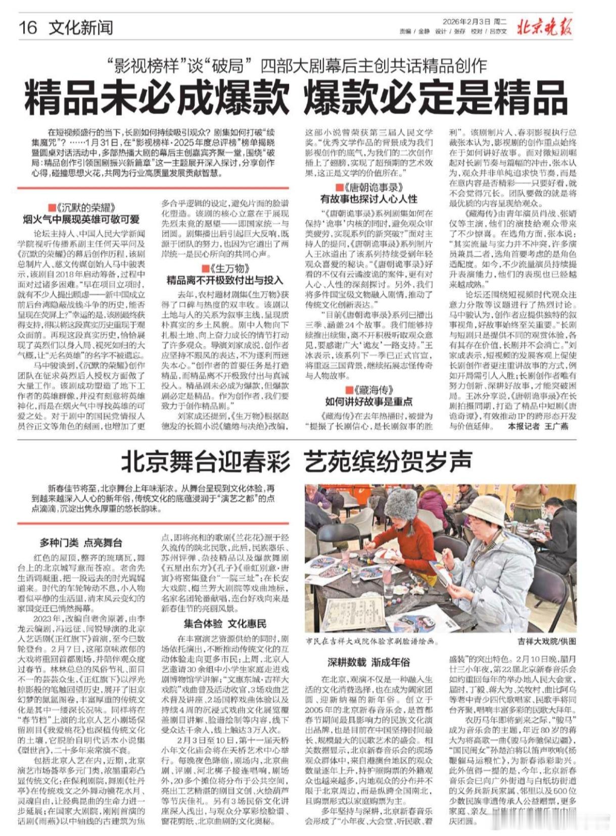 北京晚报——精品未必成爆款,爆款必定是精品4部大剧幕后主创共话精品创作——《生万
