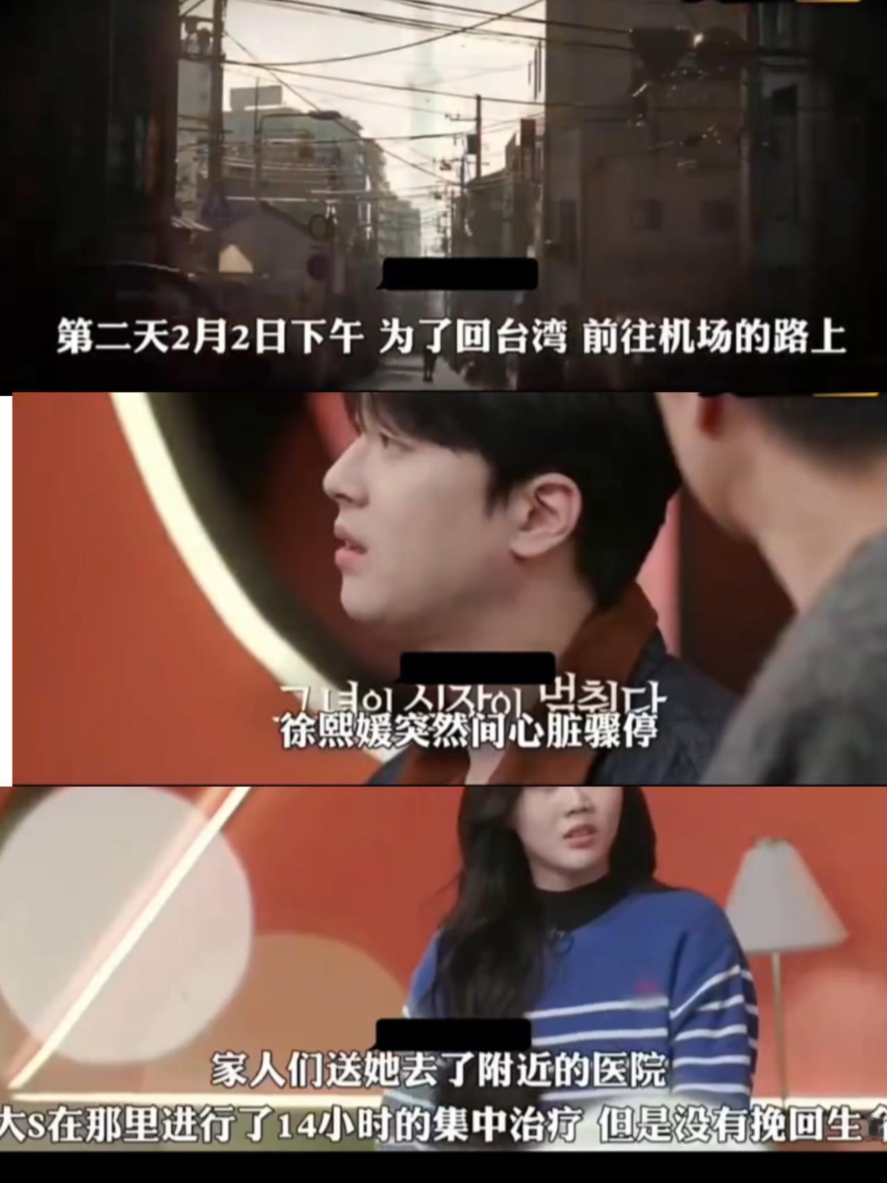 韩国综艺曝光大S离世细节! 节目中主持人透露,2025年1月29日,大S与家人赴日本旅行途中突然发高烧,在家人们慌张着该怎么办时,大S表示“想要回家”,所以他们就没去大医院就医而是买了回台湾的机票。 可谁也没料到,意外会来得如此猝不及防。2月2日下午,就在一行人乘车前往机场的途中,大S突然心脏骤停,瞬间失去意识。“家人吓得魂飞魄散,赶紧把她送往附近的医院”, 医疗团队展开了长达14小时的全力抢救,从心肺复苏到各类急救措施,医生拼尽全力进行集中治疗。最终她还是未能恢复意识,永远停留在了这场归途里。 特辑中还记录了大S丈夫具俊晔的近况,节目组跟拍时遇到雨天仍坚持前往墓园的他,面对镜头只是淡淡回应:“还是得来,熙媛比我更辛苦,她躺在那里……”话未说完便哽咽失声。 后续面对节目组的所有提问,具俊晔都完全说不了话,全程用眼泪回应,他因为不想让大家看到自己脆弱的模样,特意要求“不要接受访问、不要将这些画面公开”,只留下一句饱含思念的嘱托:“希望喜欢大S的人不要忘记她”。大S