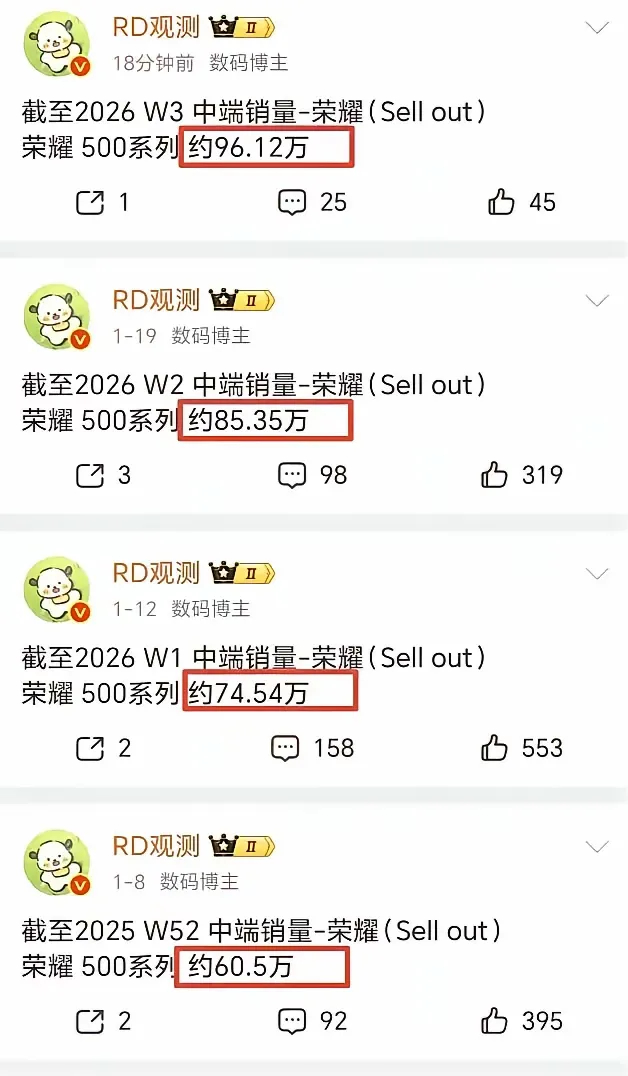 由于荣耀500系列卖的还算比较成功,可能荣耀600系列,将会继续在续航/快充、影像、性能等方面升级。预计全系标配不低于100W有线快充,Pro版本额外搭载50W无线快充,解决了大电池充电慢的后顾之忧。