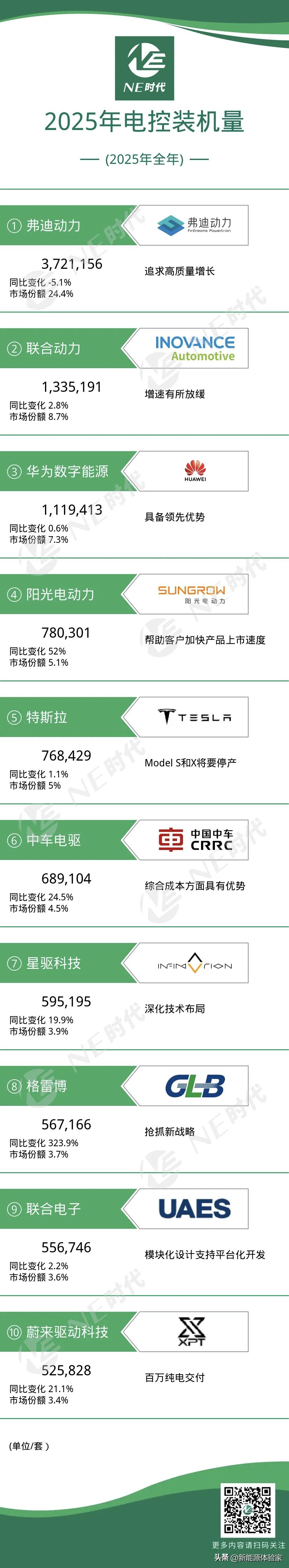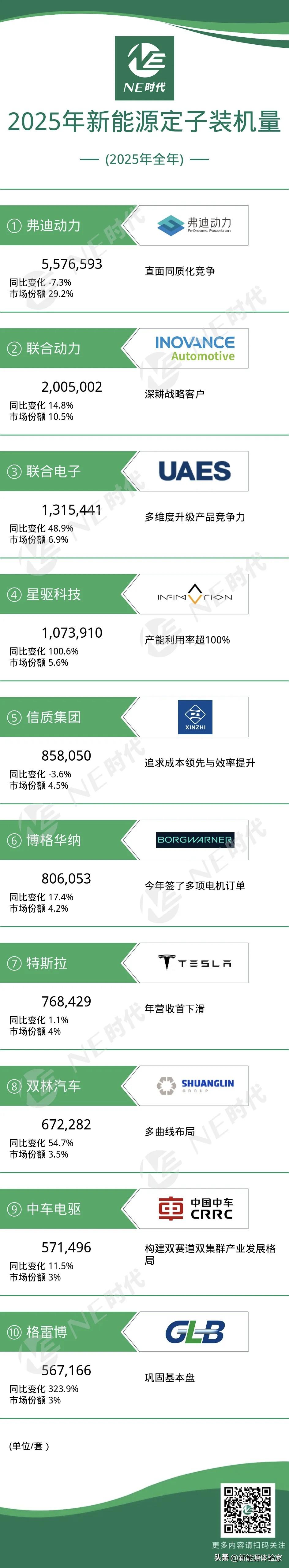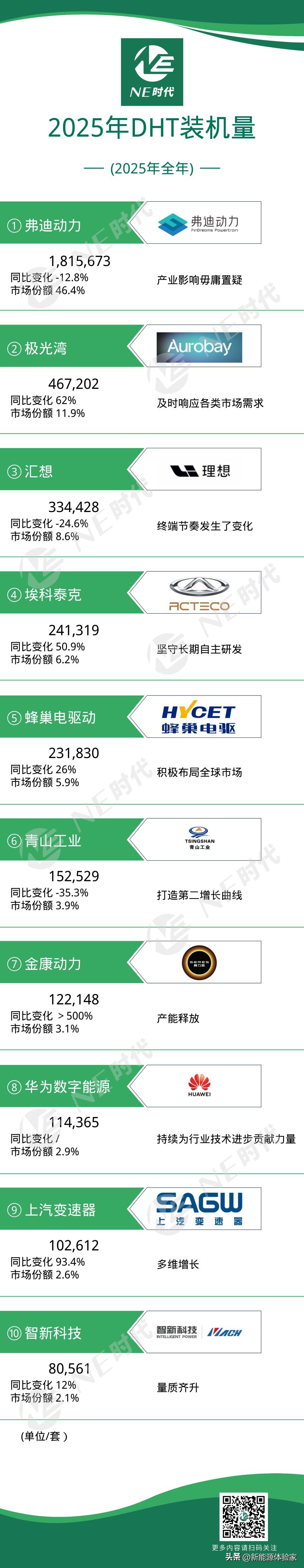 谁会是新能源车界的“博世”?这张榜单或许有了答案 传统车圈的博世靠供应链“通吃”全行业,现在新能源车界谁能接这个班?看这堆装机量数据直接懵了——比亚迪系(弗迪动力/弗迪电池/比亚迪半导体)直接把“全产业链王者”写在脸上了! 双电控/电驱/DHT/OBC/BMS/PACK……几乎每个核心部件的装机量都是第一,市场份额动辄20%+; 连SiC功率模块、智驾域控这些高端领域,要么是TOP2,要么是增速黑马; 更狠的是从芯片到电池、从电控到电驱全自己造,不光供自家车,还往外卖——这不是“新能源车博世”是什么? 但也有狠角色在追:华为数字能源在电驱/电控/OBC都冲进前3,宁德时代在电芯/PACK/BMS稳坐第二,这些“单项冠军”会不会后来居上? 你们觉得谁能真正长成“新能源车界的博世”?评论区投个票!