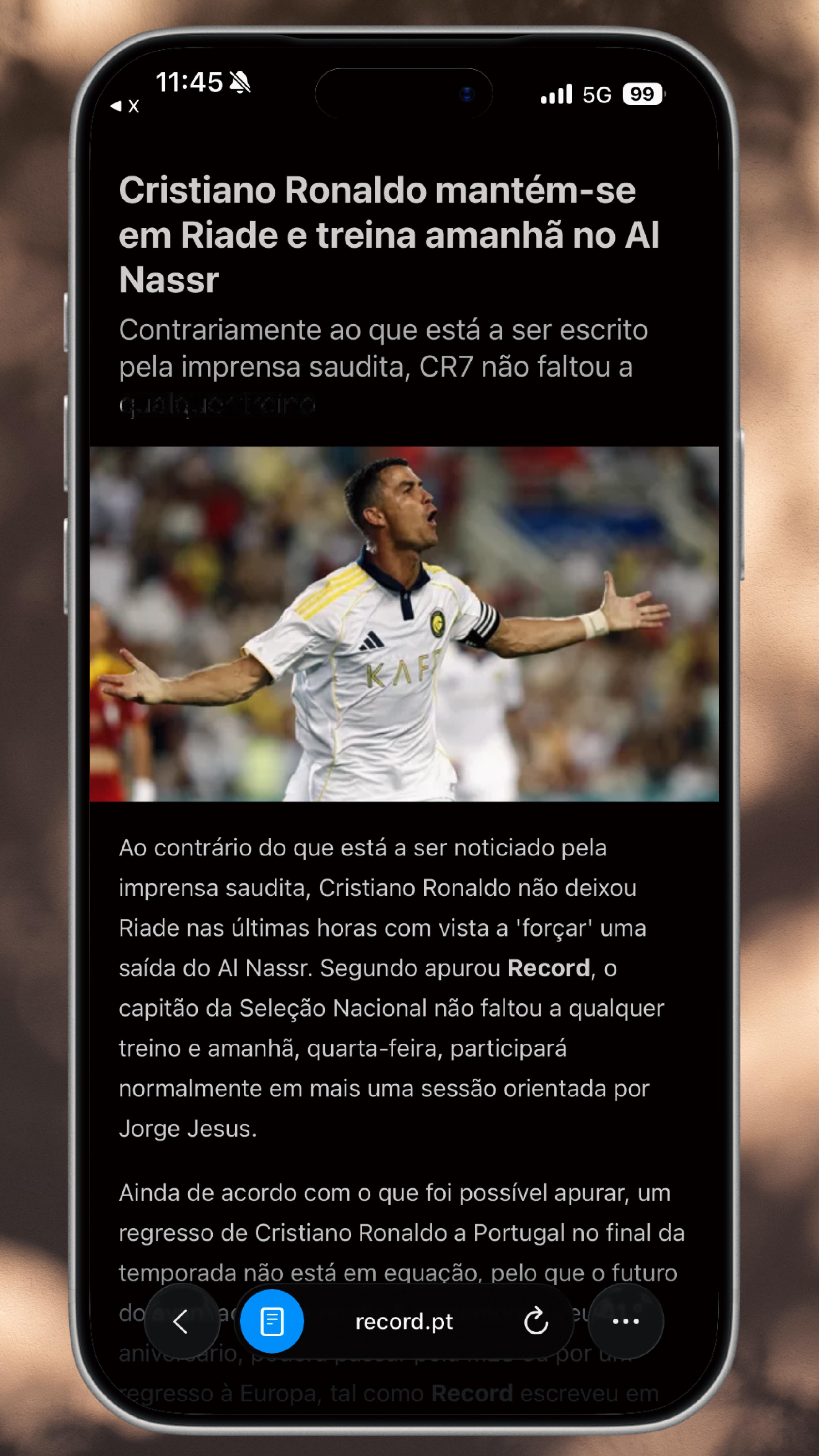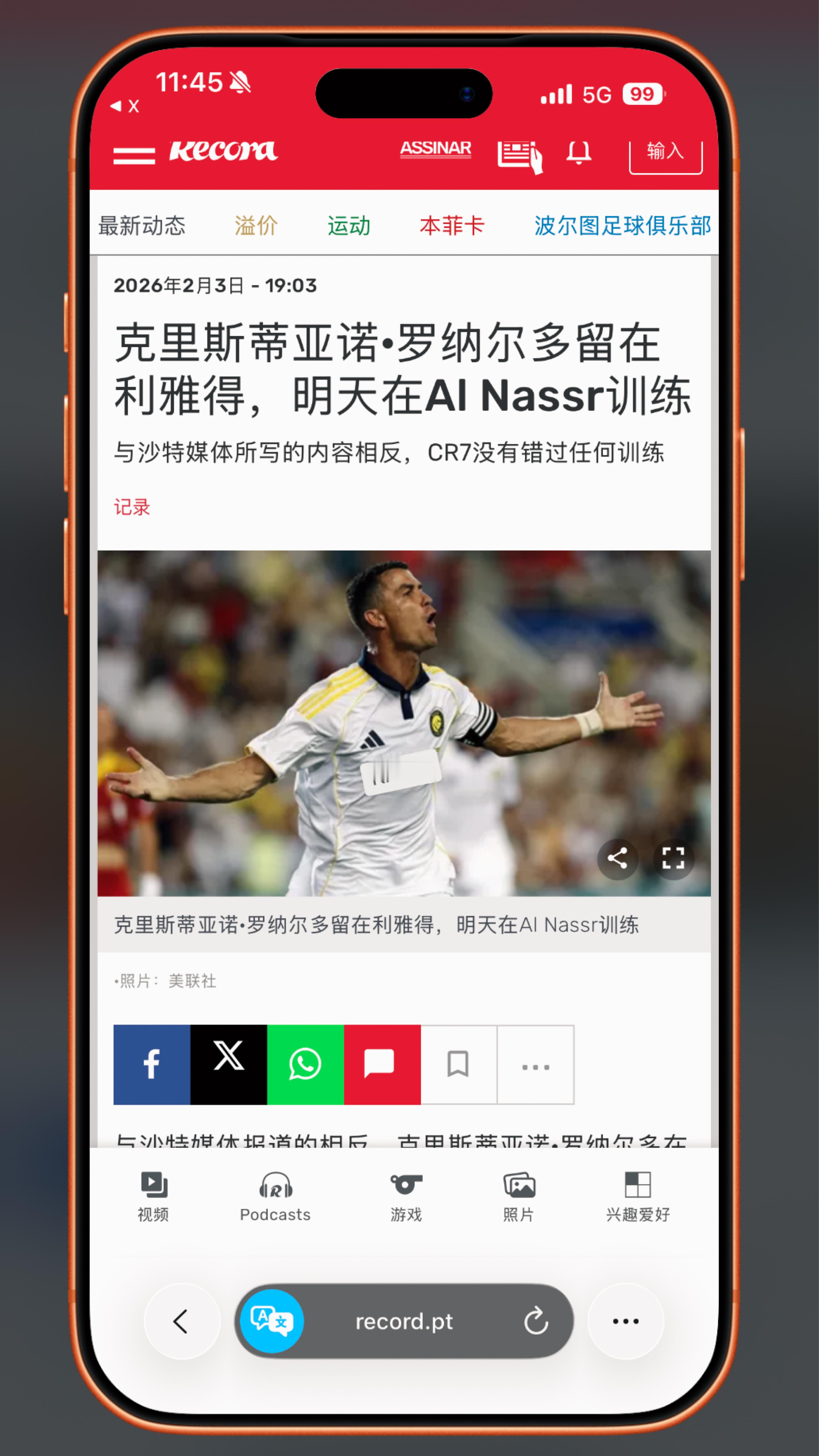 🔶 与沙特媒体的报道相反,C罗最近几小时并未离开利雅得,以此“逼迫”利雅得胜利放他离队。C罗也没有缺席任何训练,(2月4日)将照常参加由主帅若热·热苏斯指导的训练课。
