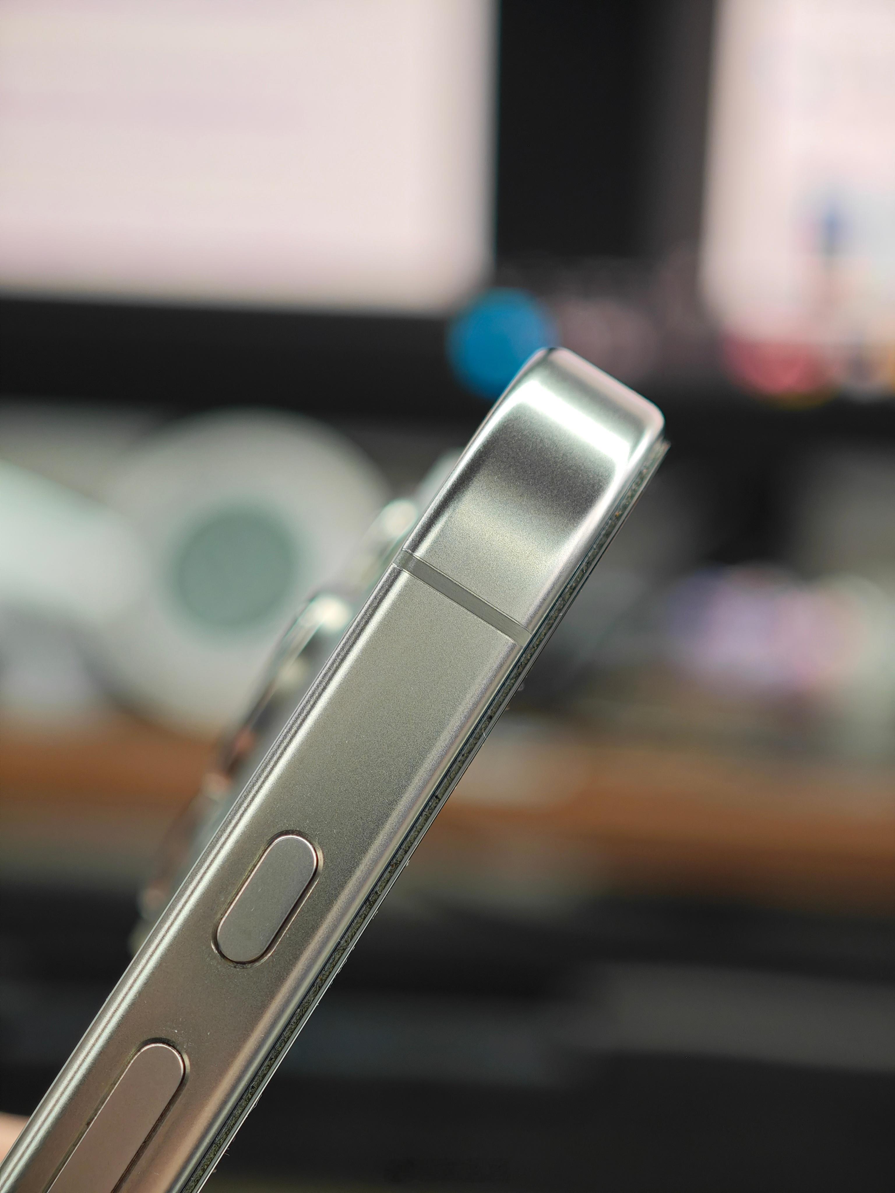 关于iPhone的钛金属边框,大家是更喜欢15 Pro的拉丝,还是如下图16 Pro这种细腻的磨砂效果两代的材质是一样的,都是5级钛(Ti-6AI-4V),表面处理不同:除了拉丝和磨砂的区别,16 Pro相比15 Pro会更有光泽度一些