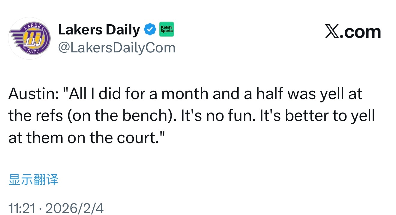 NBA常规赛,湖人客场对阵篮网的比赛已经结束,湖人大胜篮网。赛后,湖人主教练J